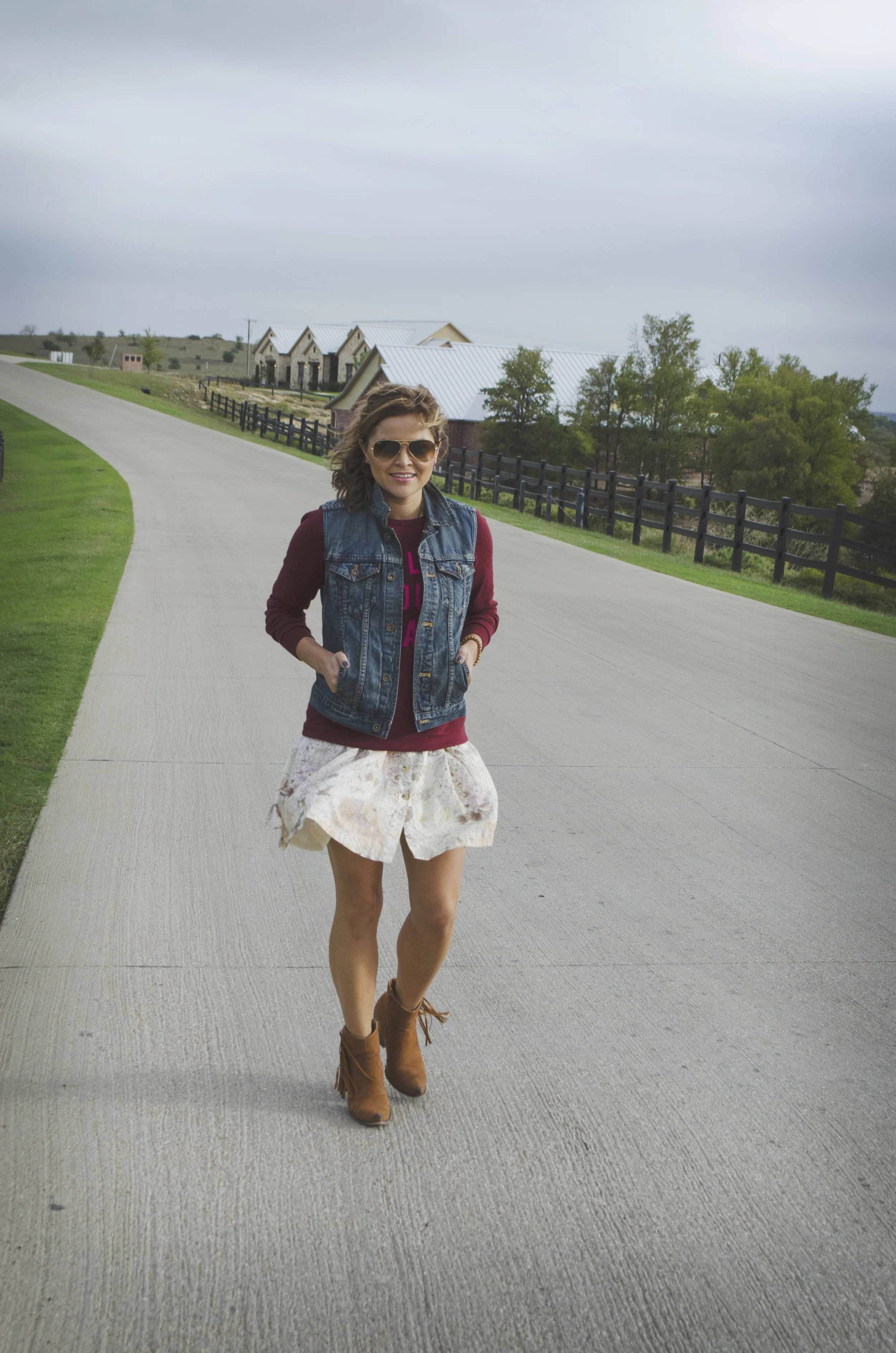 Dress: S.I.C. Couture | Sweater: Old Navy, old (similar) | Vest: Madewell | Shoes: Bucco, old (love these and these) | Ray-ban