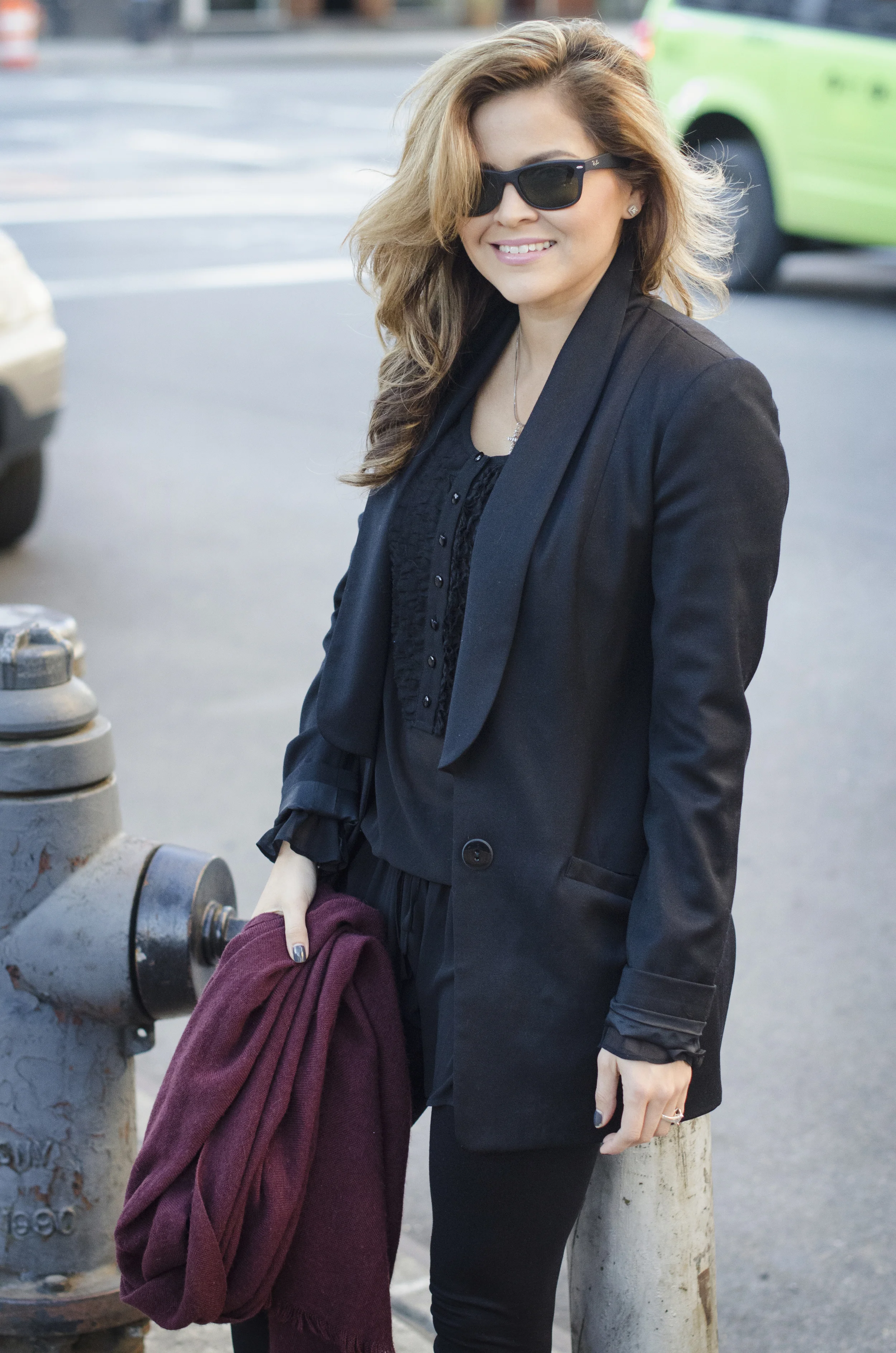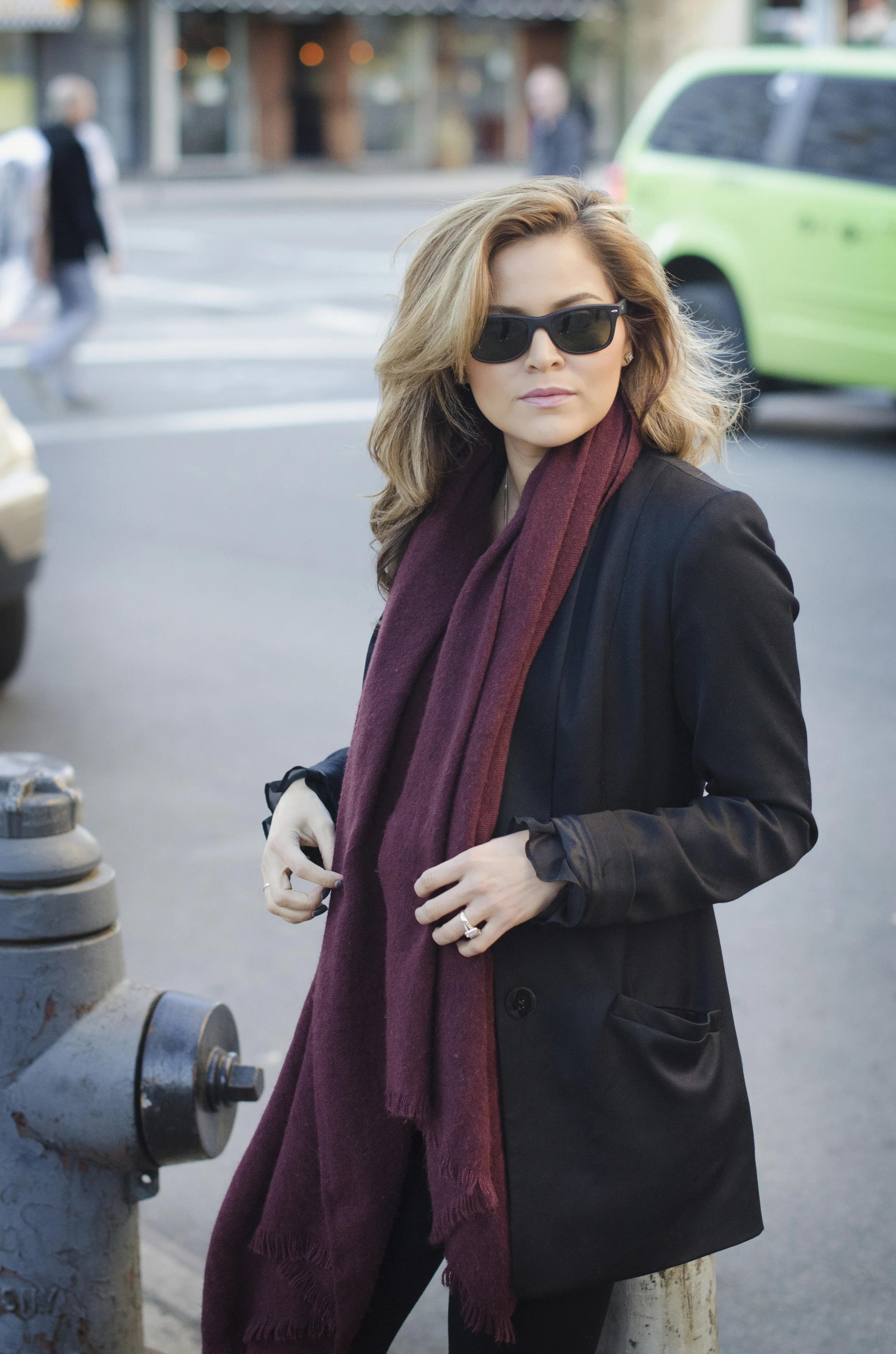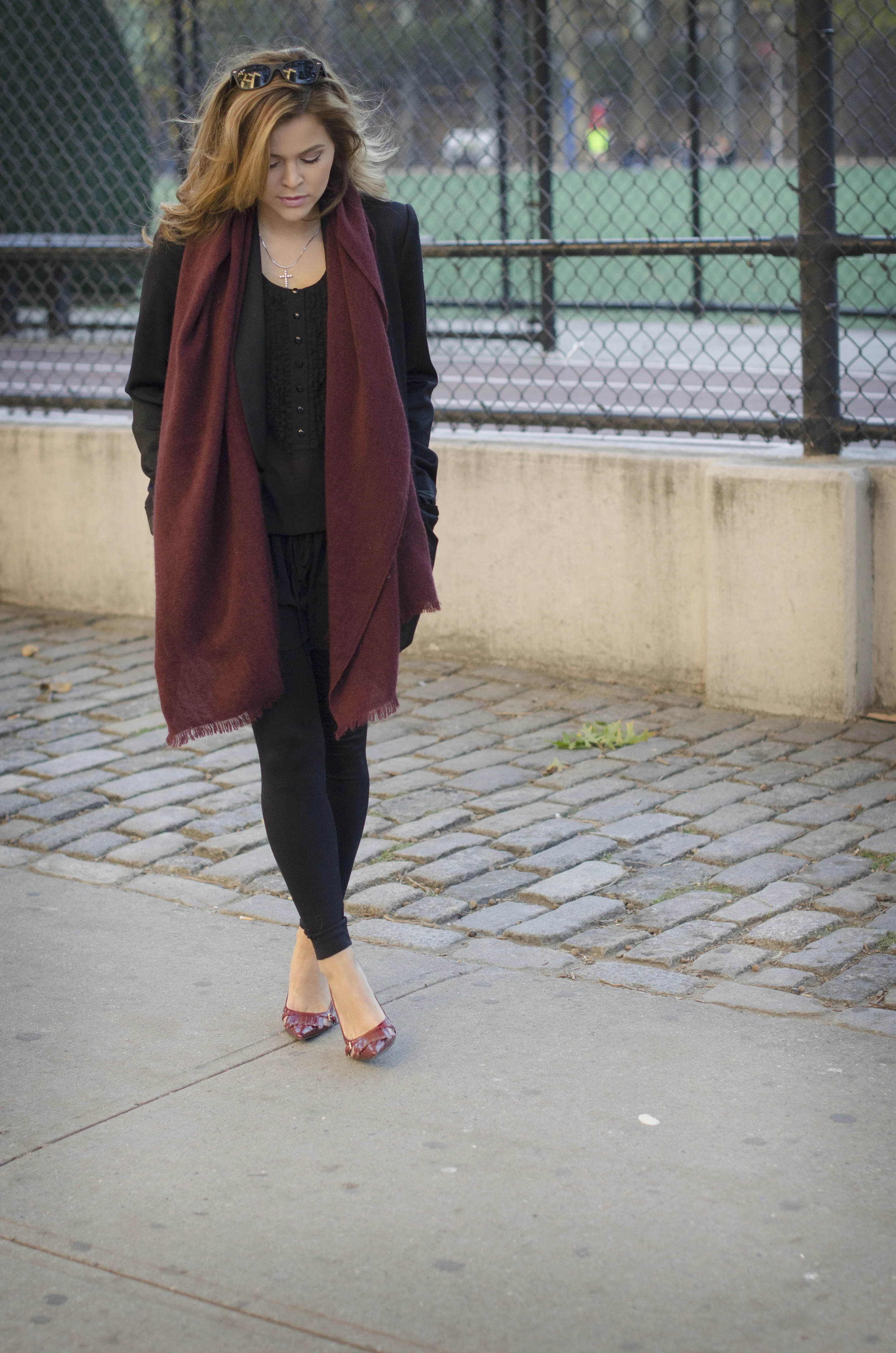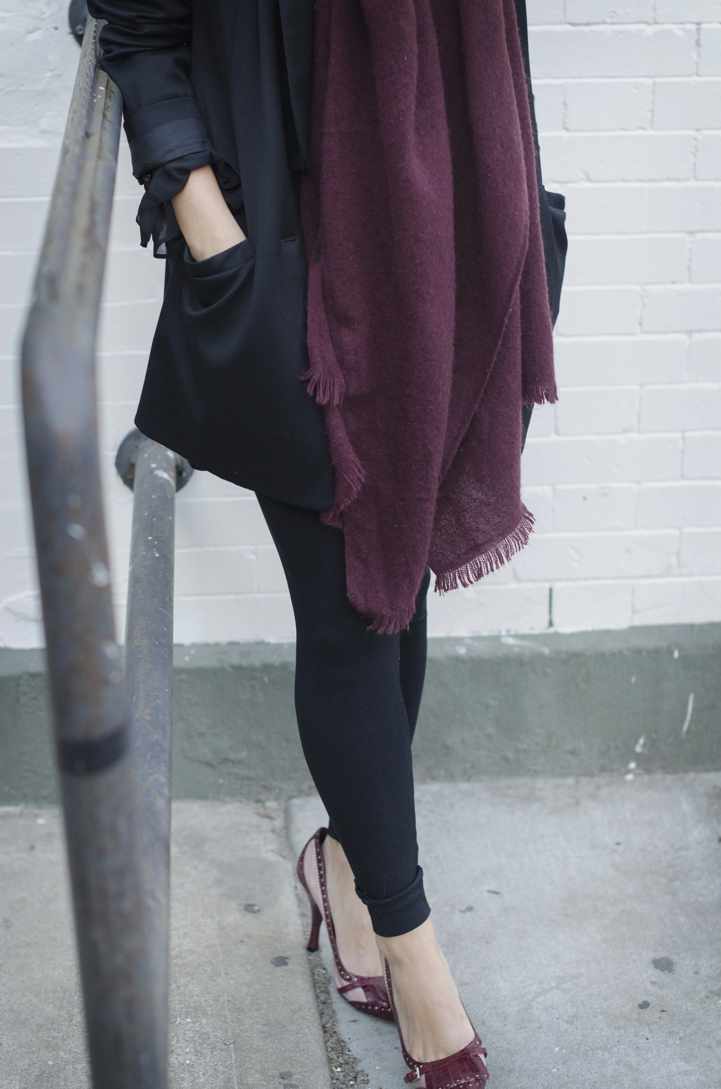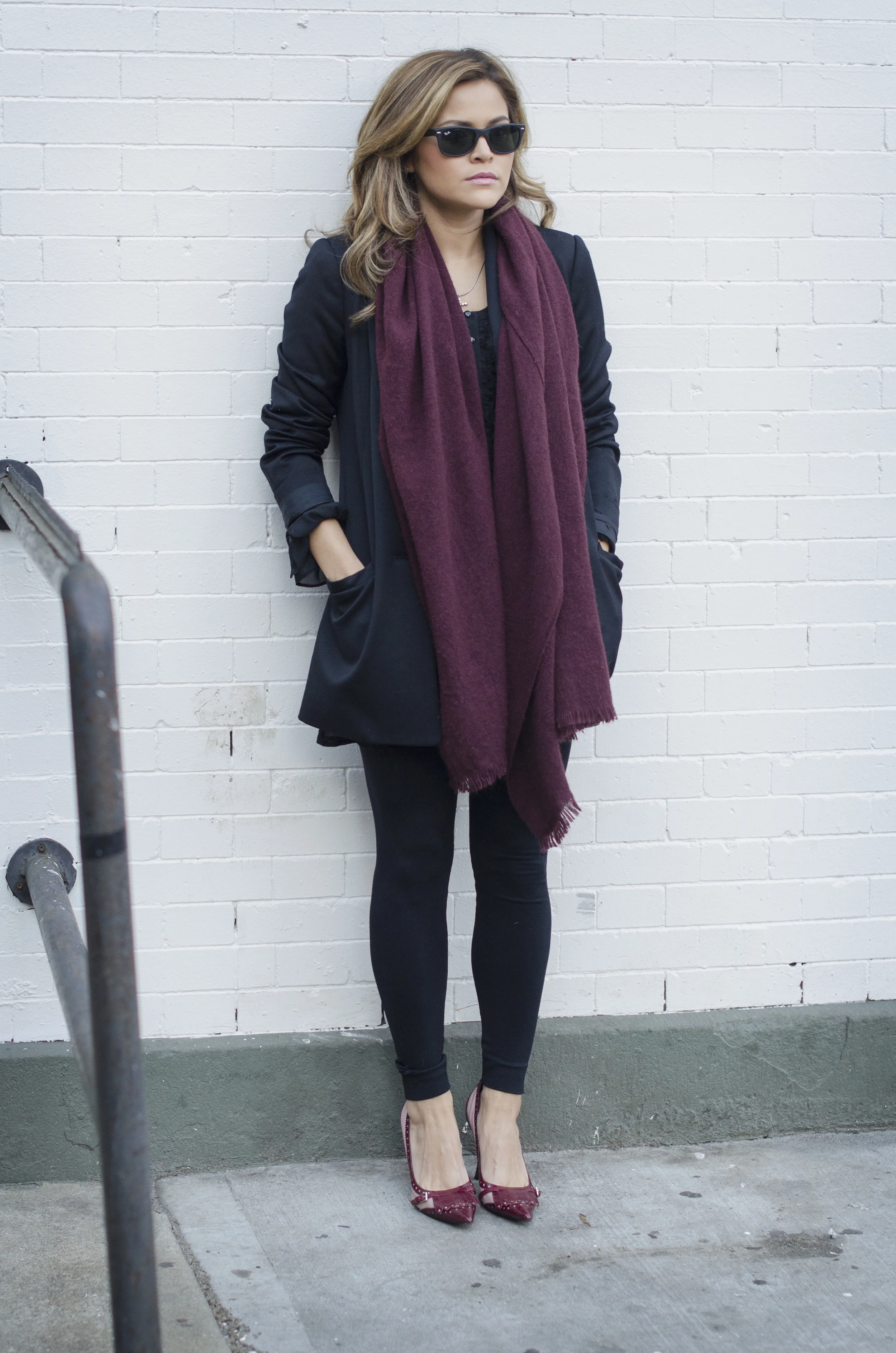 Blazer: S.I.C. Couture | Shirt: Seven, old (similar) | Leggings, old (similar) | Scarf: Forever 21 | Shoes: Nine West, old (similar) | Sunnies: Ray-ban