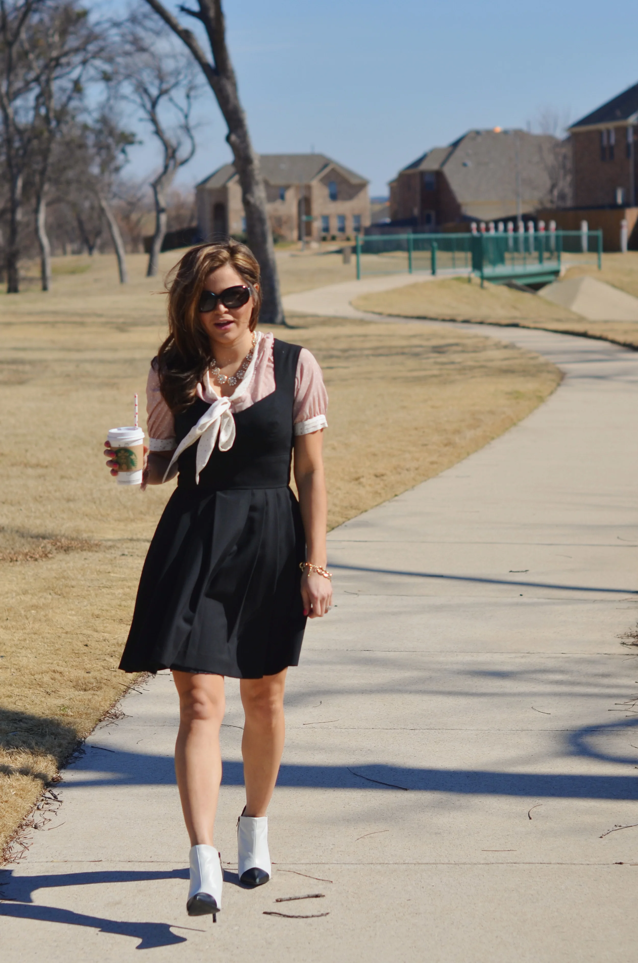 Happy Valentine's Day! Love is in the air. The day of romance, flowers, and dinner dates. But most importantly, what to wear! Let's be honest, you can't go wrong with a LBD and you can't go wrong spicing it up with something festive - whether it be your shoes, a bold lip, or in my case here, I threw on a light pink blouse with polka dots. I thought the color of the blouse gave the black dress a romantic feel.