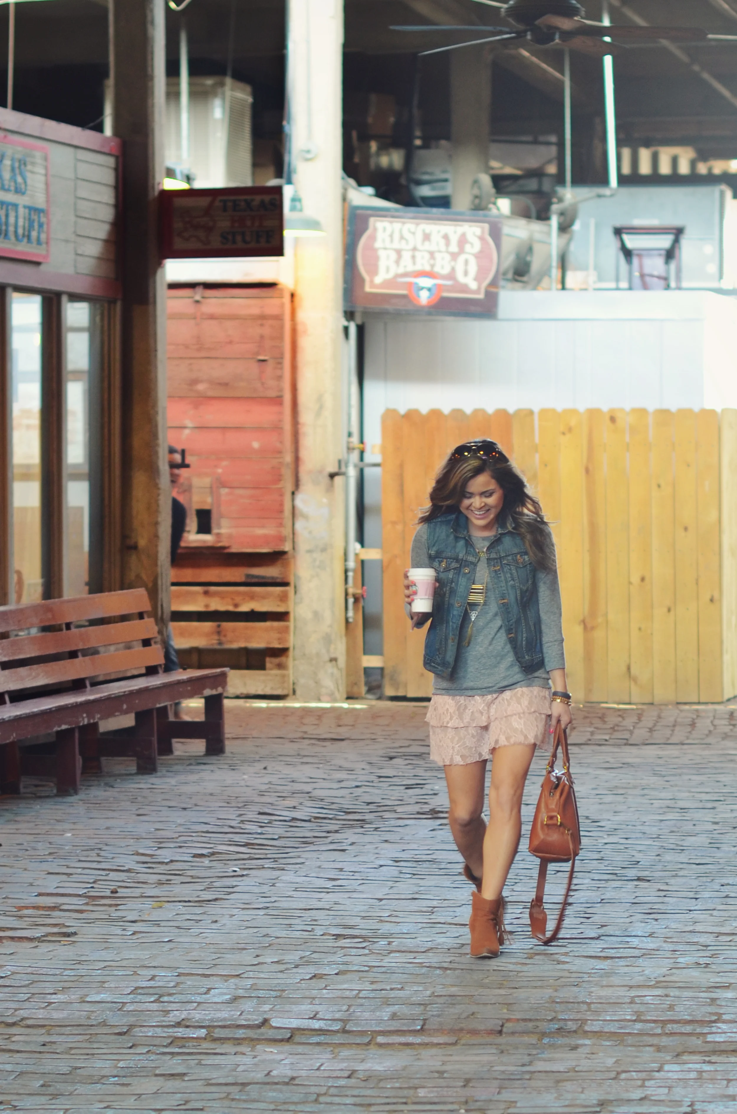 Yay for Friday! This outfit seemed appropriate for this weekend - lace, denim and ankle fringe boots (that I CANNOT live without). Having shot these pictures in the Stockyards in Ft. Worth, Texas was super fun. The sun was shining, the wind was blowing (the air smelled of cow maneuver) and it was the perfect patio weather. Any plans this weekend?