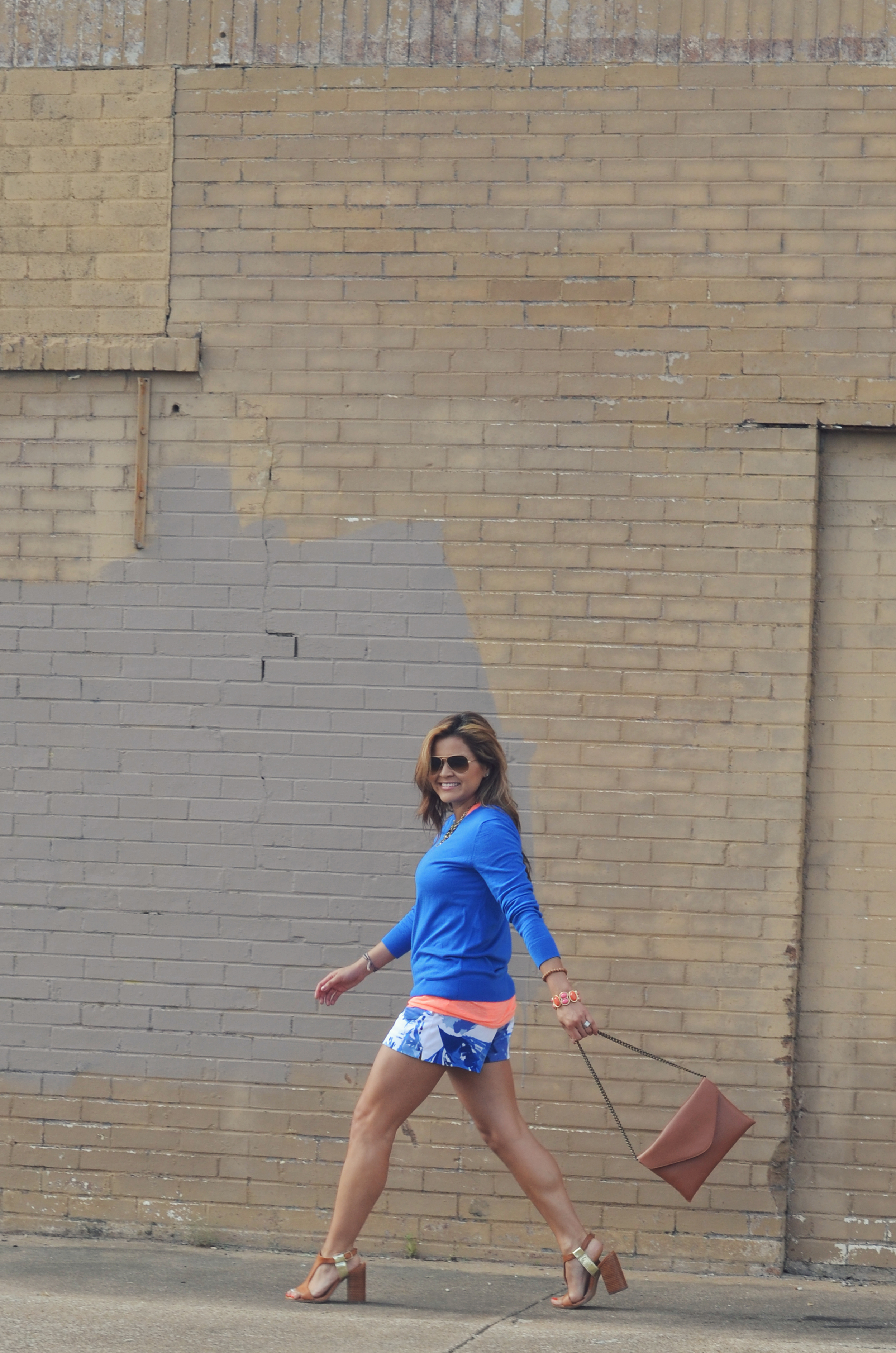Shorts: S.I.C. Couture | Tee: Old Navy | Sweater: Gap | Shoes: Kelsi Dagger | Clutch: J.Crew | Sunnes: Ray-ban