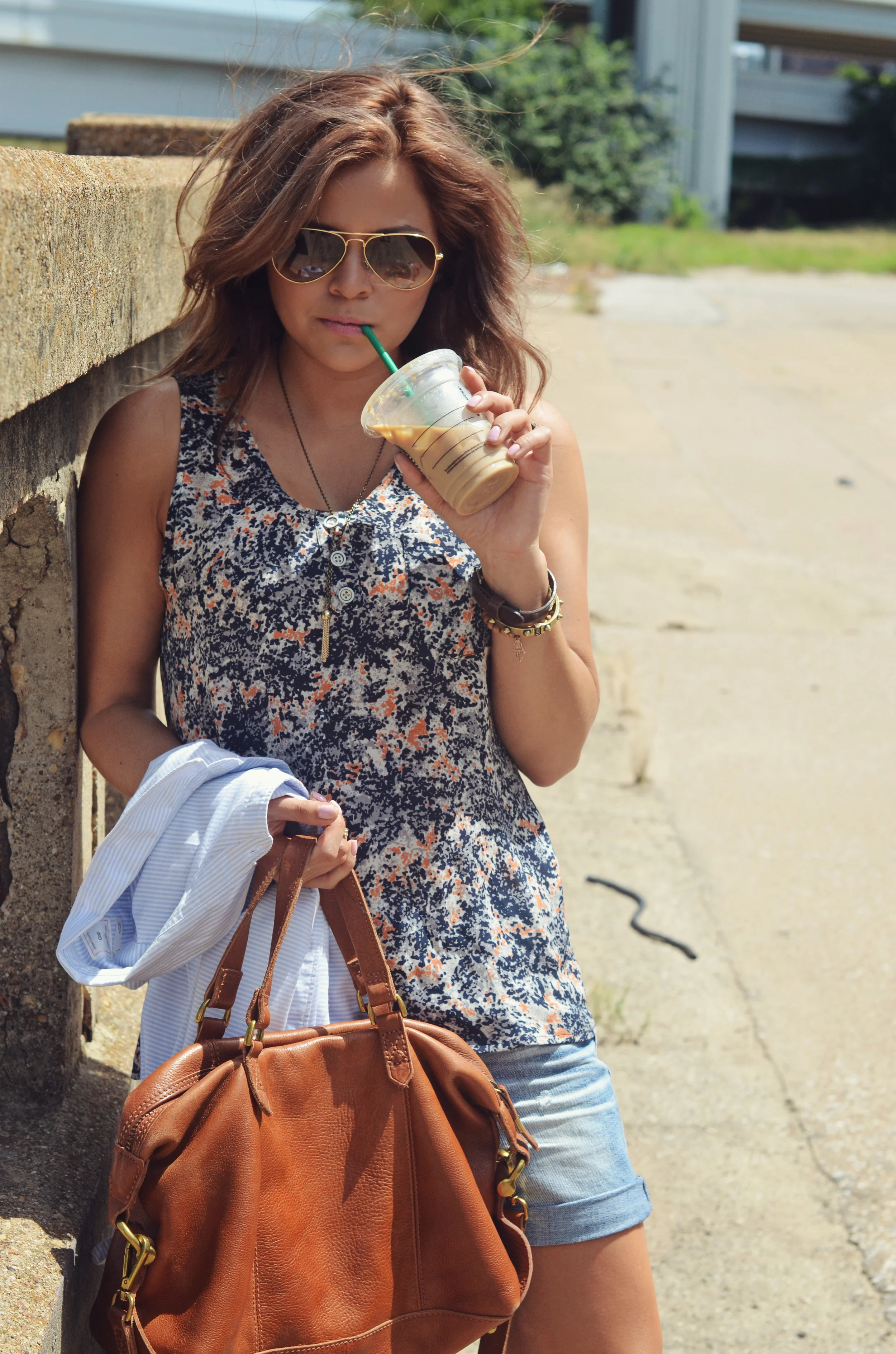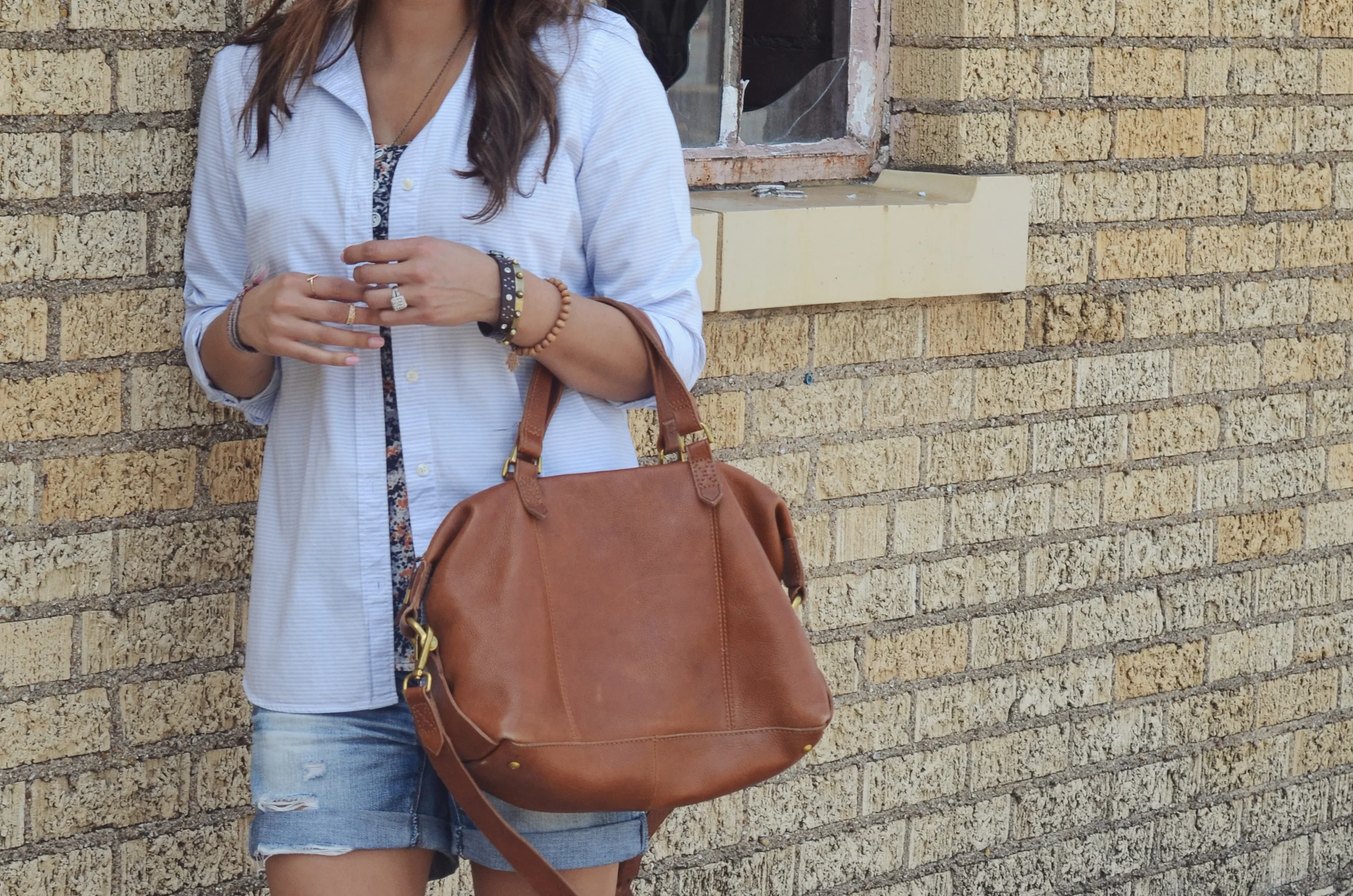 Tank: S.I.C. Couture (on sale and SOOOOO worth it, I promise!!!) | Button up: Gap | Shorts: American Eagle | Shoes: Vans | Bag: Madewell | Necklace: Ampris Love | Sunnies: Ray-ban