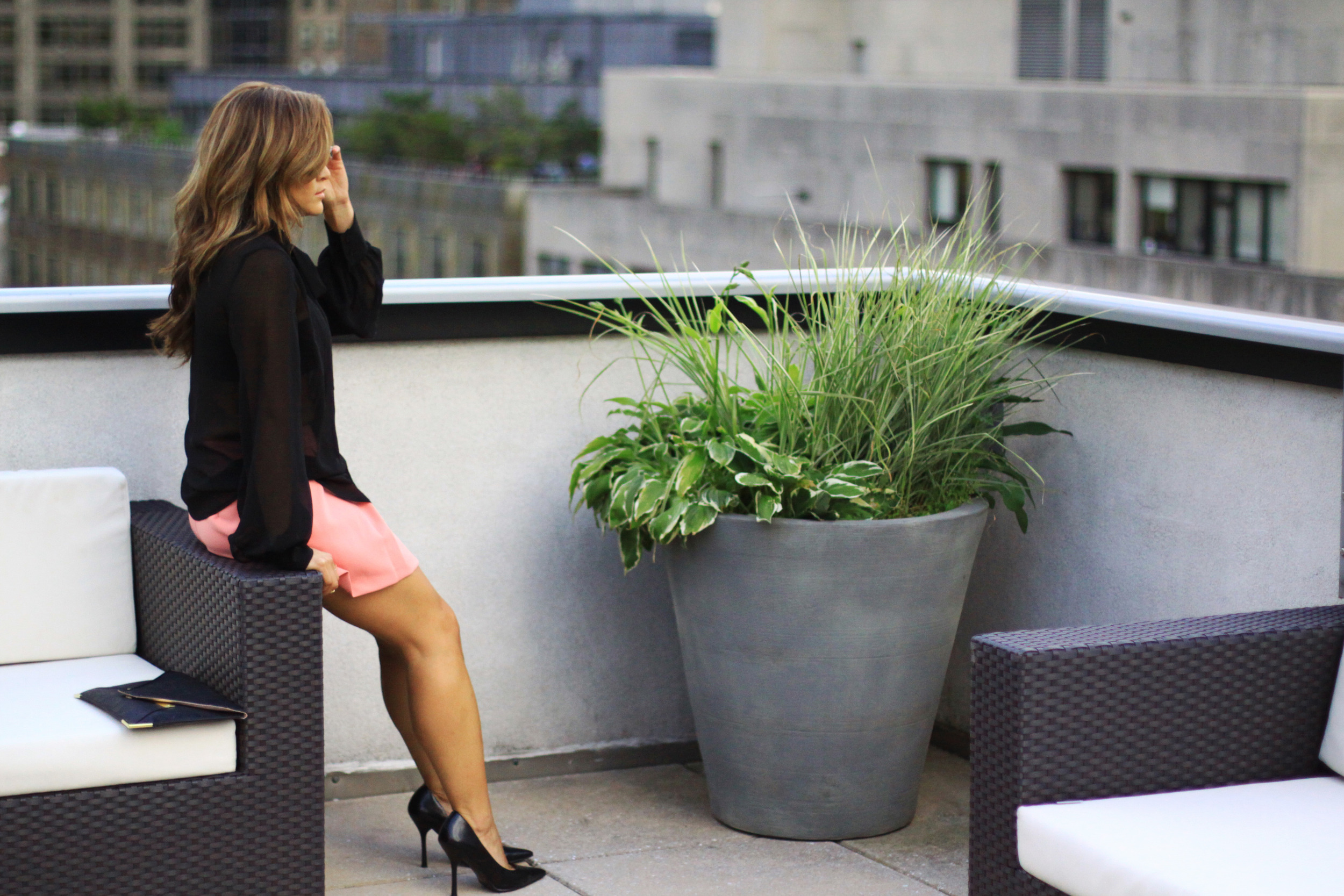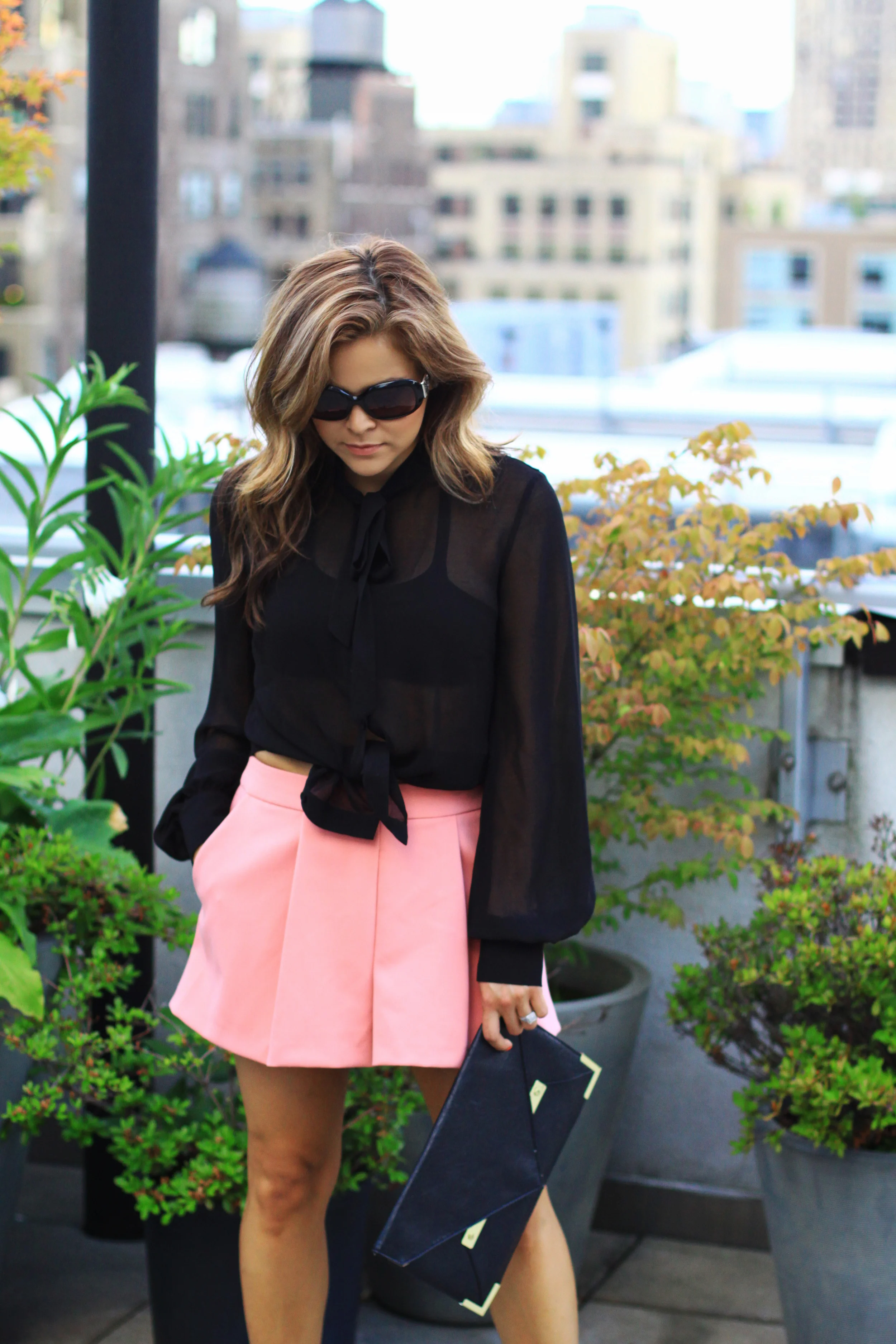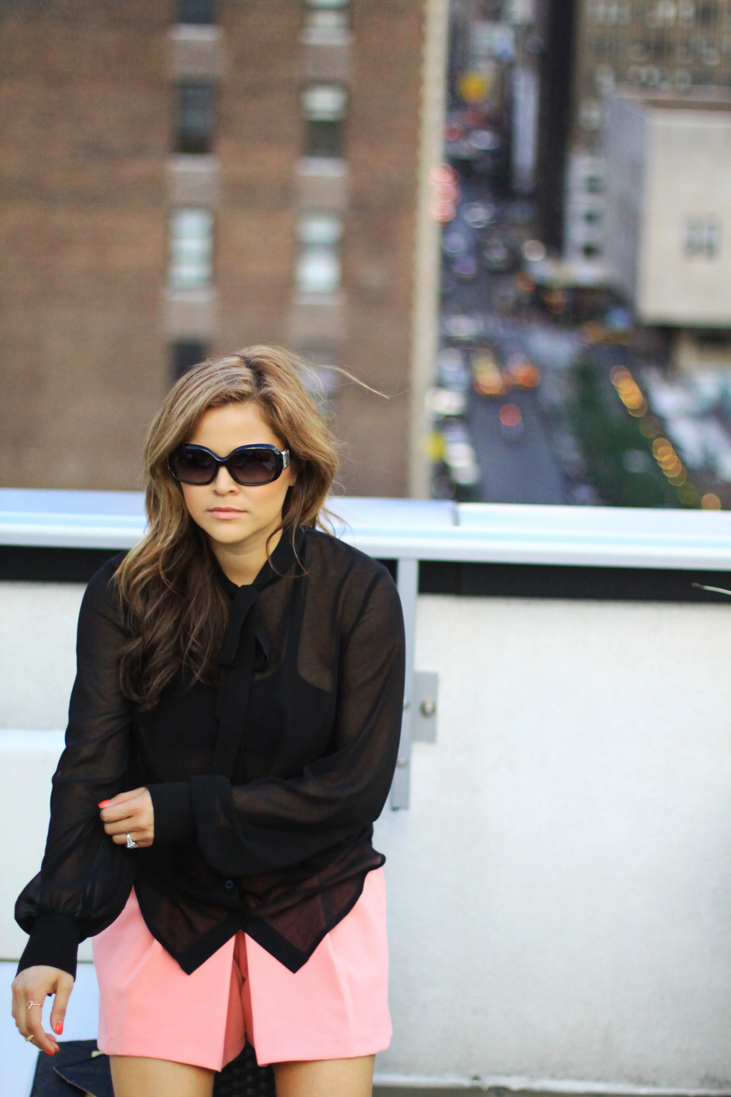 Hello, gorgeous! Hope you had a great weekend! Finally I got to shoot a post in NYC, thanks to my talented friend Carlin. Many of you might know that I shoot all my post in Texas (my photog aka my mother is there). Carlin and I have been talking about shooting together again foreverrrrr (she took this picture almost 2 years ago) and we finally made it possible. The first shoot was rooftop with the NYC buildings as our backdrop (pretty awesome) and the weather was absolutely perfection - sunny and breezy and this shirt was just right for this weather, paired with a recent score at Zara. I haven't worn a "skort" in soooooo long and the color was so pretty and I loved the fabric.