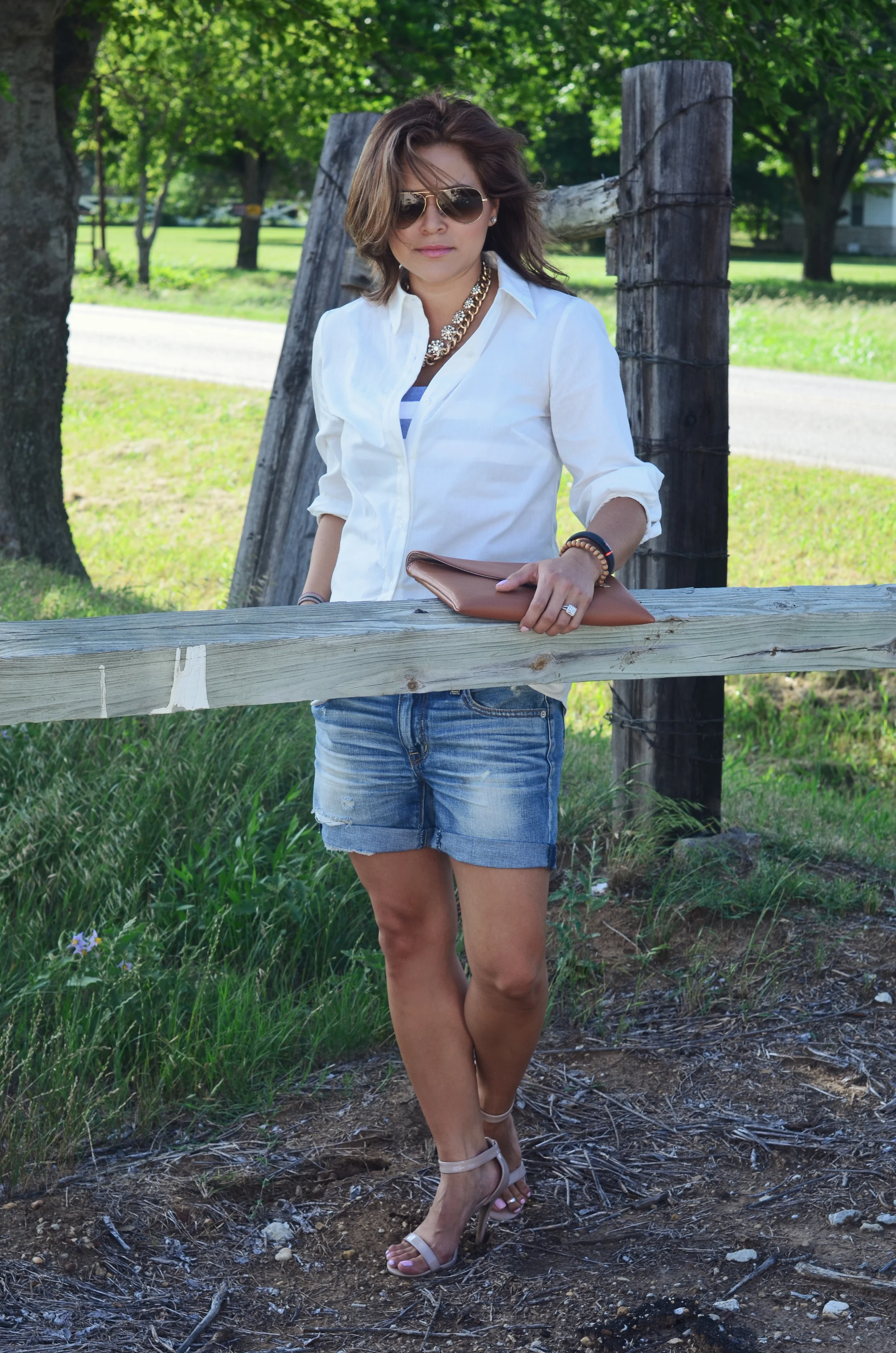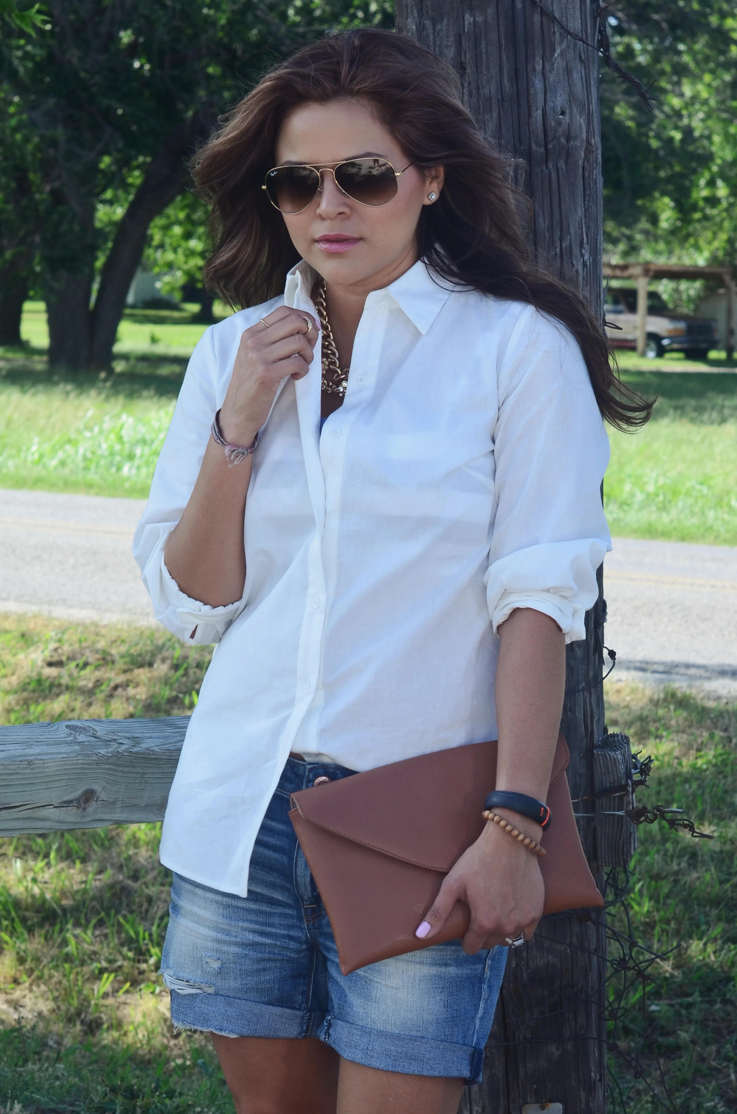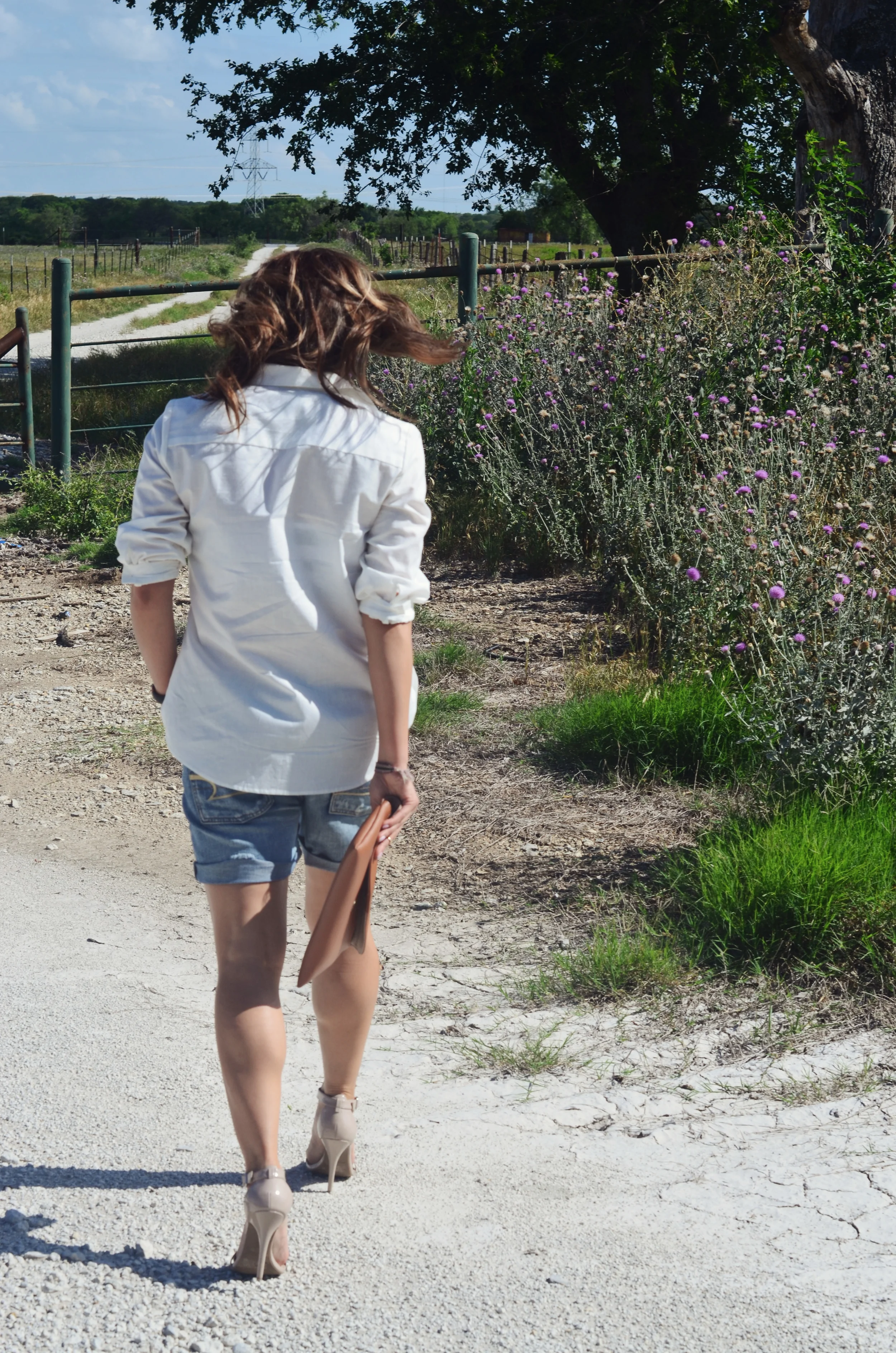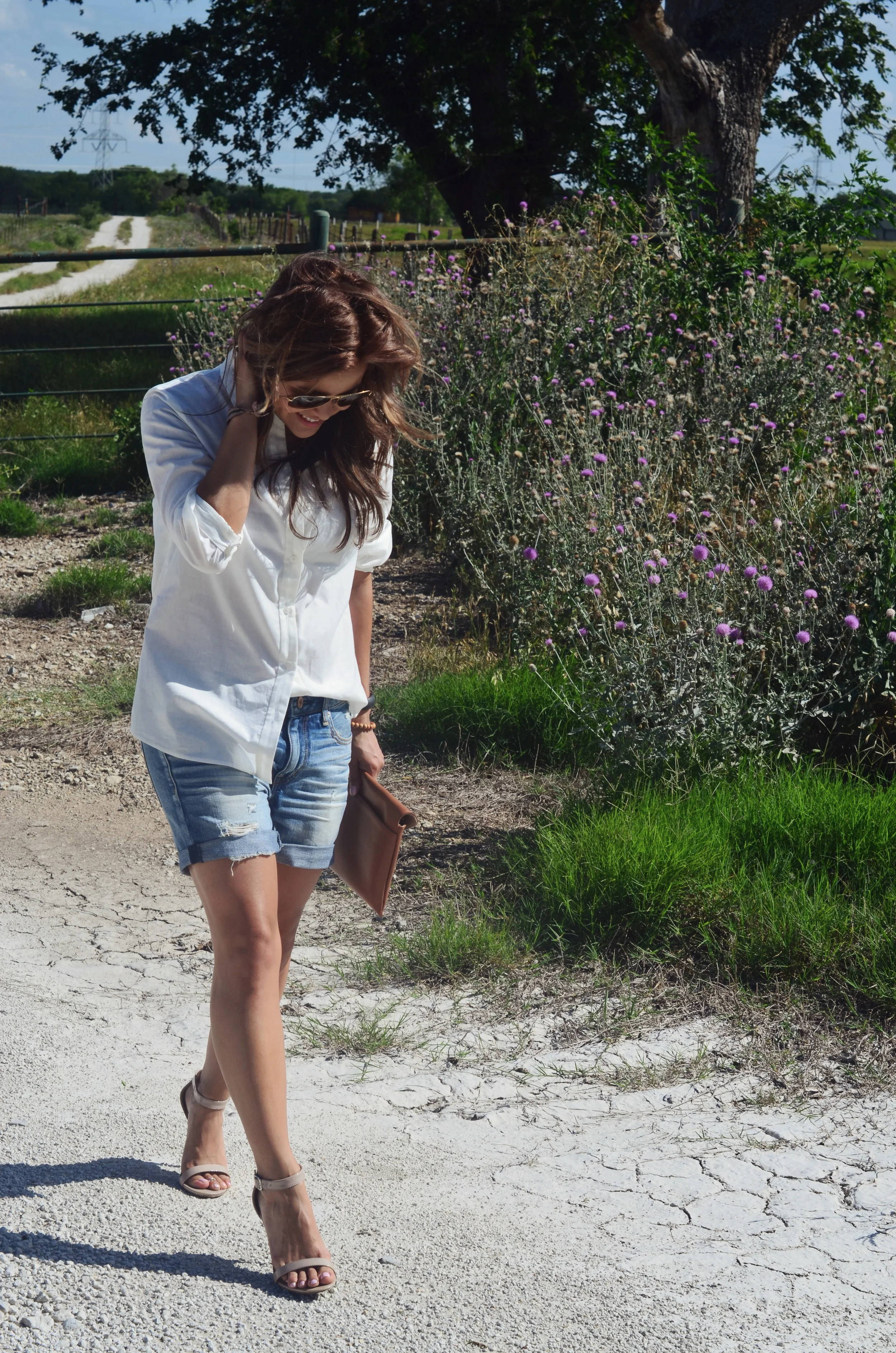 Hello, gorgeous! Nothing says classic than a white button up, boyfriend shorts, and some nude heels. I wore this outfit last week for a date night with my lover and I loved it. The Texas heat can be pretty brutal but this 3/4 sleeve shirt is perfect this time of year. I am also loving these shorts - they are super comfy and needless to say, I wear them often.