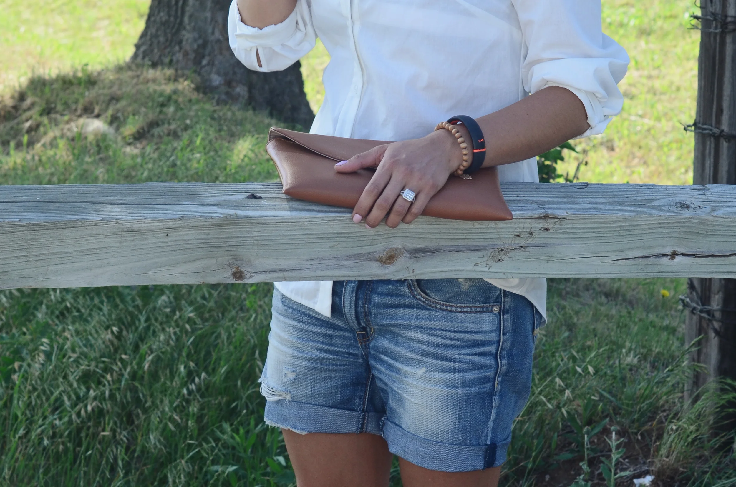 Top: S.I.C. Couture | Boyfriend shorts: American Eagle | Shoes: Lulu's | Clutch: J.Crew | Sunnies: Ray-ban | Necklaces: H&M and Charming Charlie