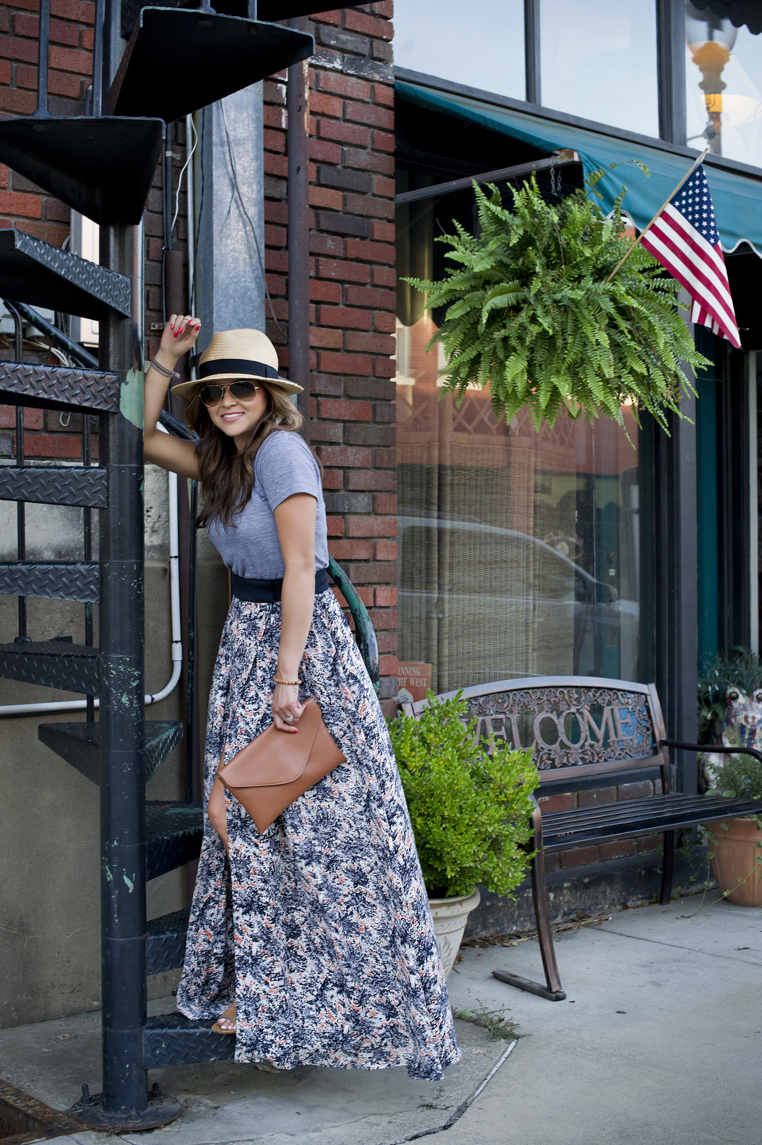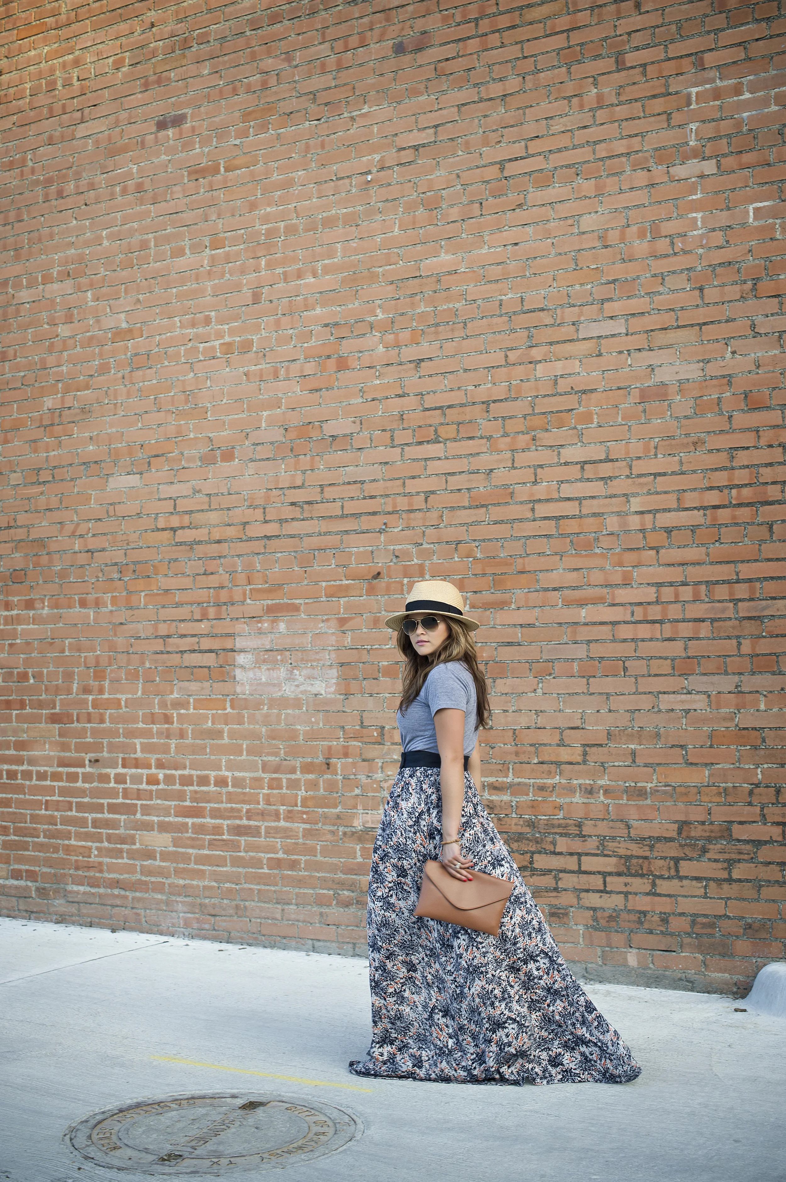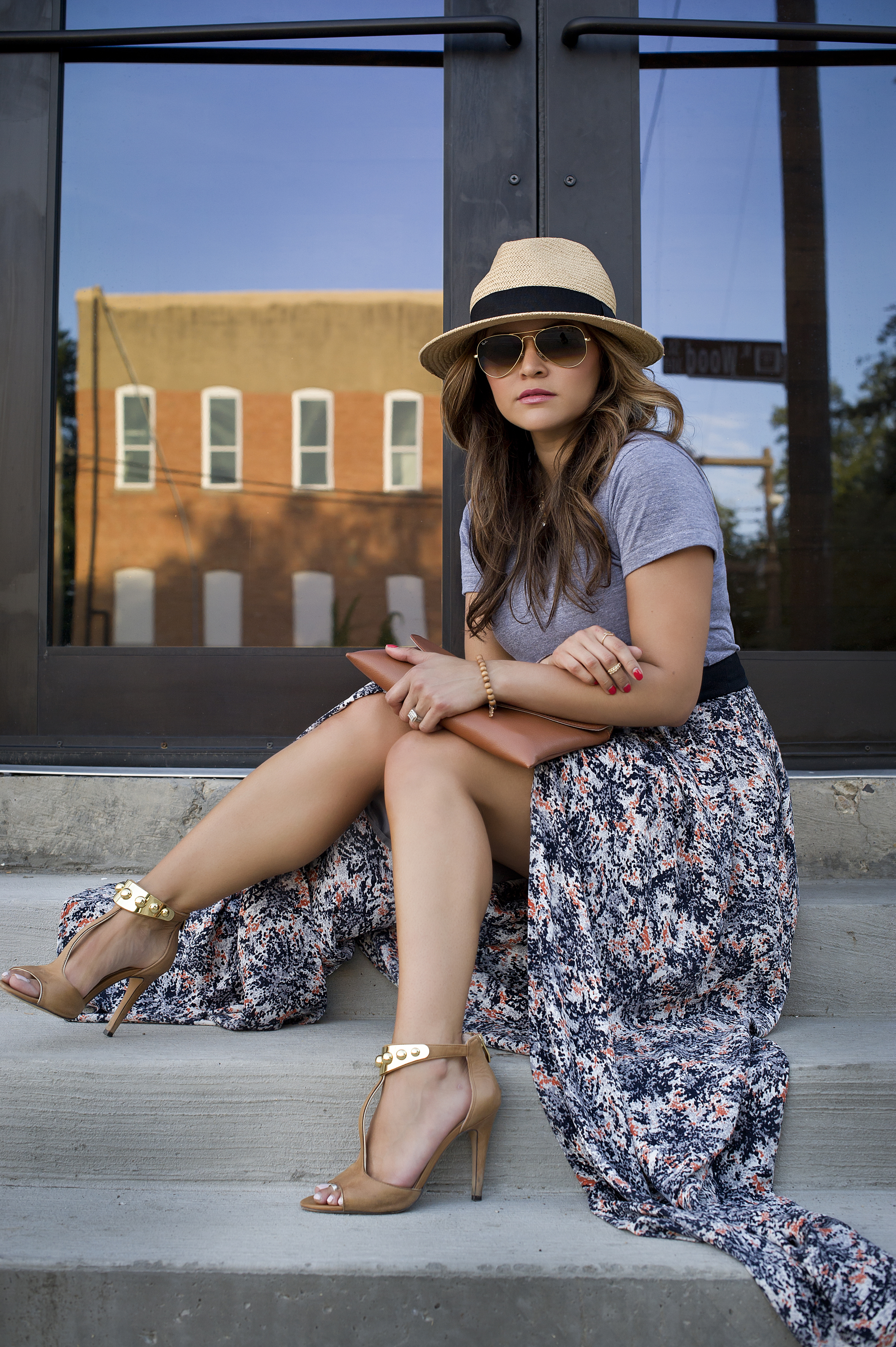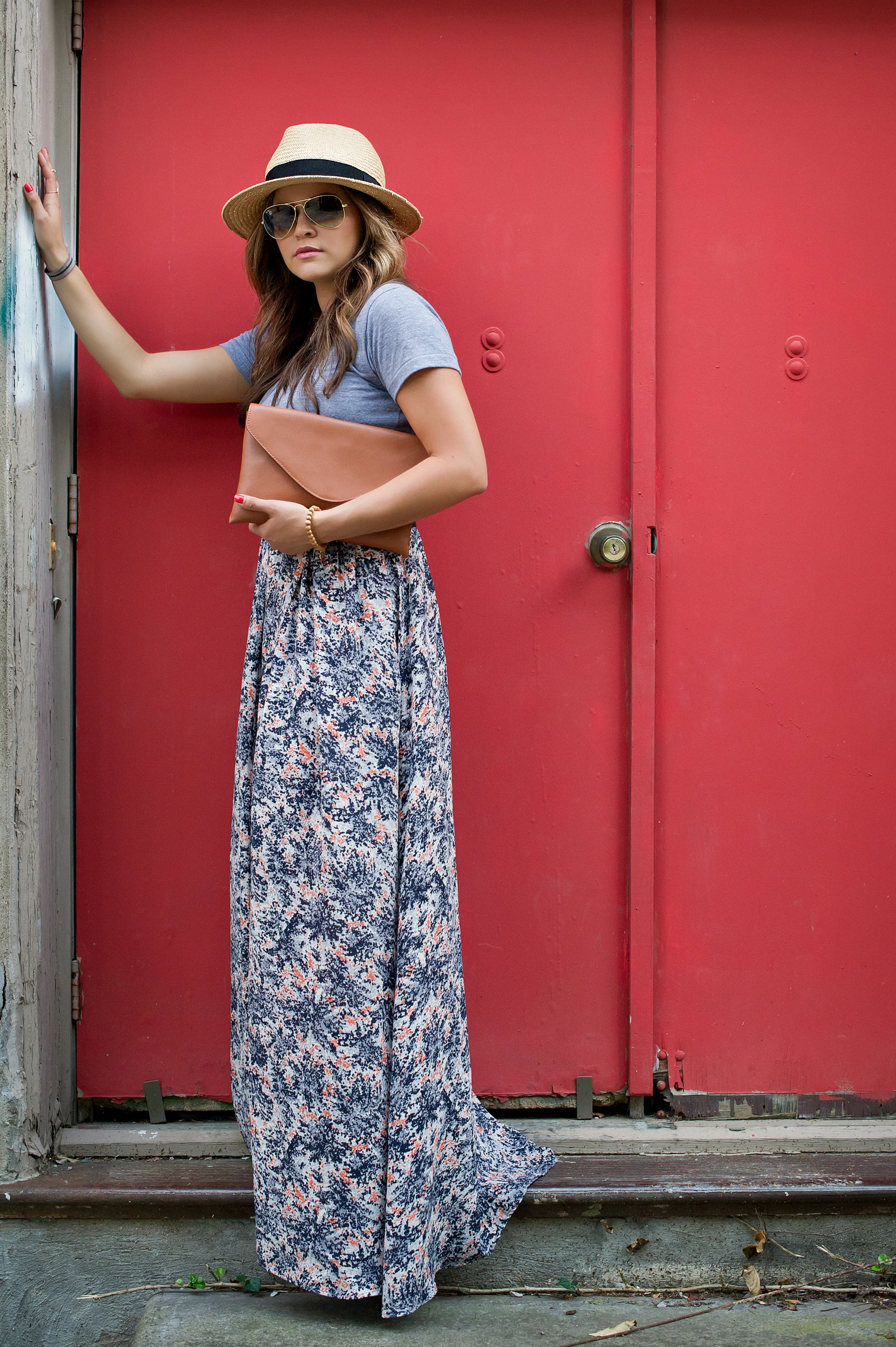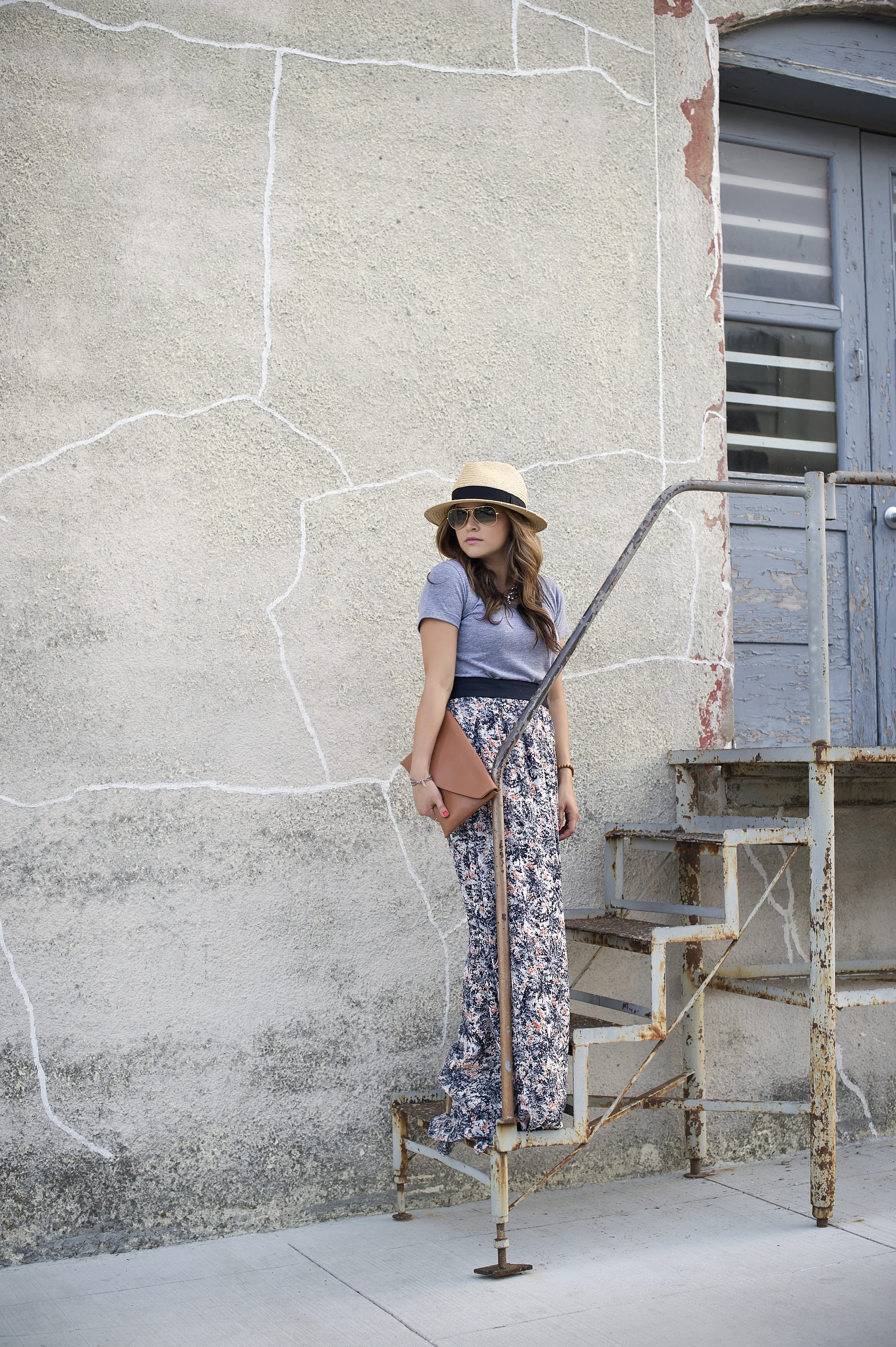 Top: American Apparel | Skirt: S.I.C. Couture | Clutch: J.Crew | Panana Hat: Old Navy | Sunnies: Ray-ban | Necklace: Jewelmint