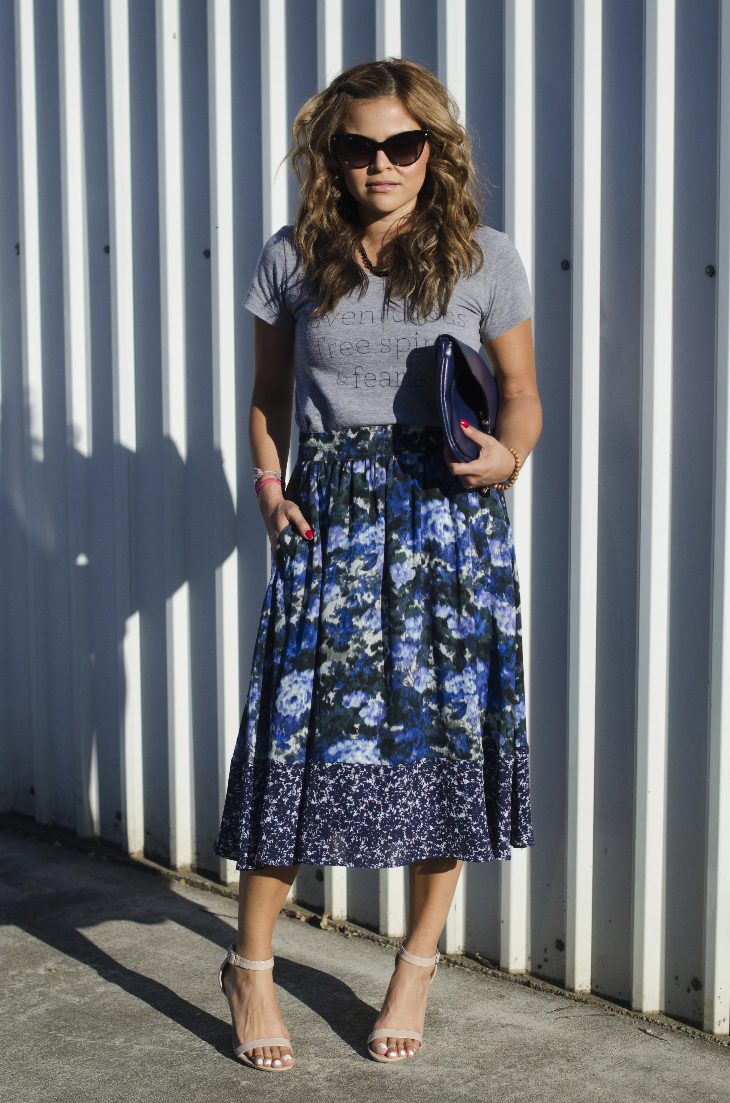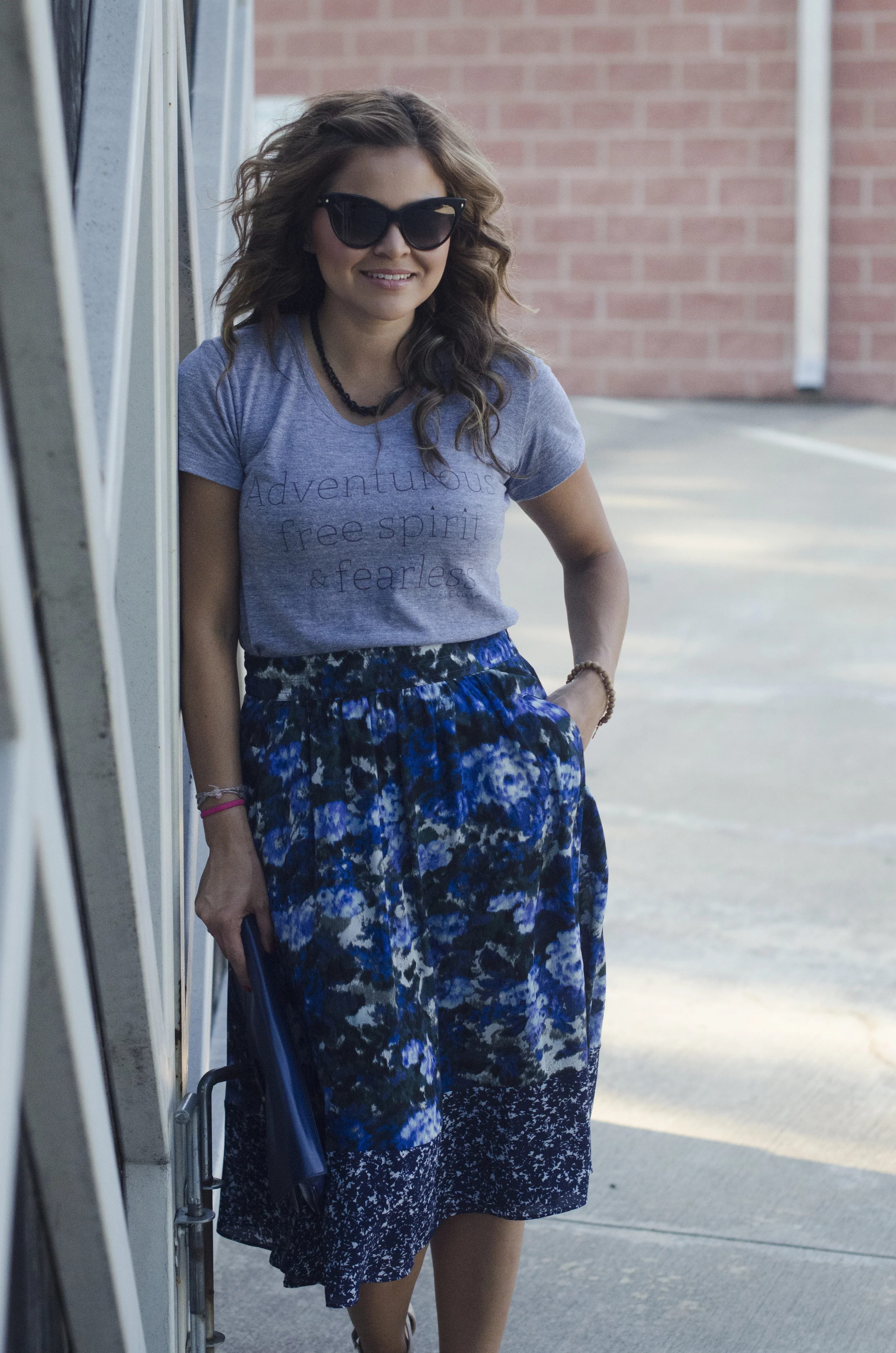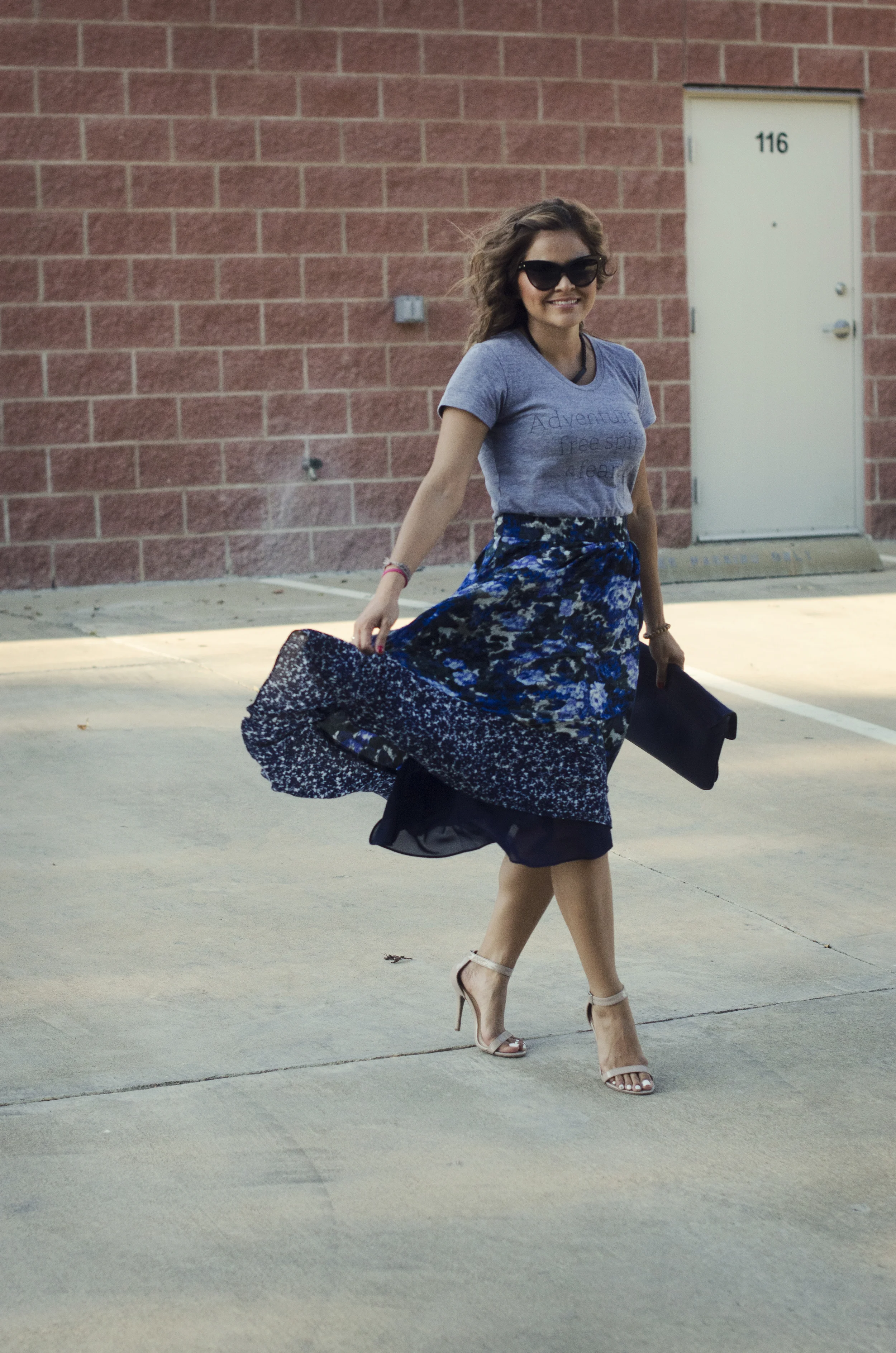 It goes without saying that this shirt goes pretty much with any bottoms - I originally wore it first with a black skirt when I introduced the shirt here and then I did a boho inspired look here. When I found this midi floral skirt I knew this shirt would go perfectly, making it casual dressy. Something you could wear on a date night or drinks with the girls...or even the office! Do you have this shirt yet?! Well, if you don't then today is your lucky day - it's on sale again! Head to S.I.C. Couture and grab one. Also, don't forget to take advantage of 40% off of all sale items - use code - EXTRA40