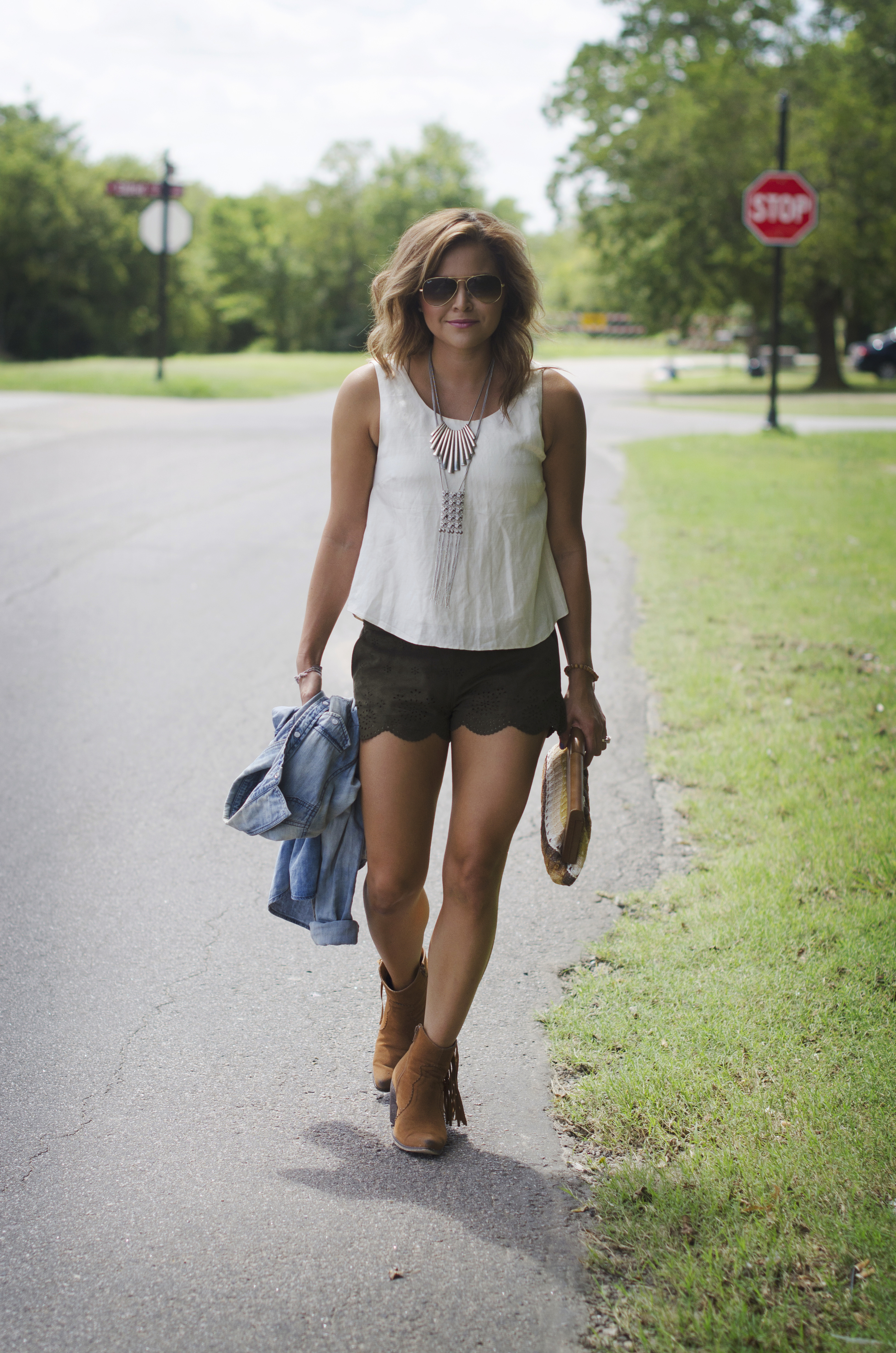 Tank: S.I.C. Couture (coming this fall) | Button up: Forever 21 (love this one) | Shorts: Abercrombie (similar) | Shoes: Bucco (similar) | Clutch: Urban Expressions (similar) | Necklaces: Forever 21 | Sunnies: Ray-ban