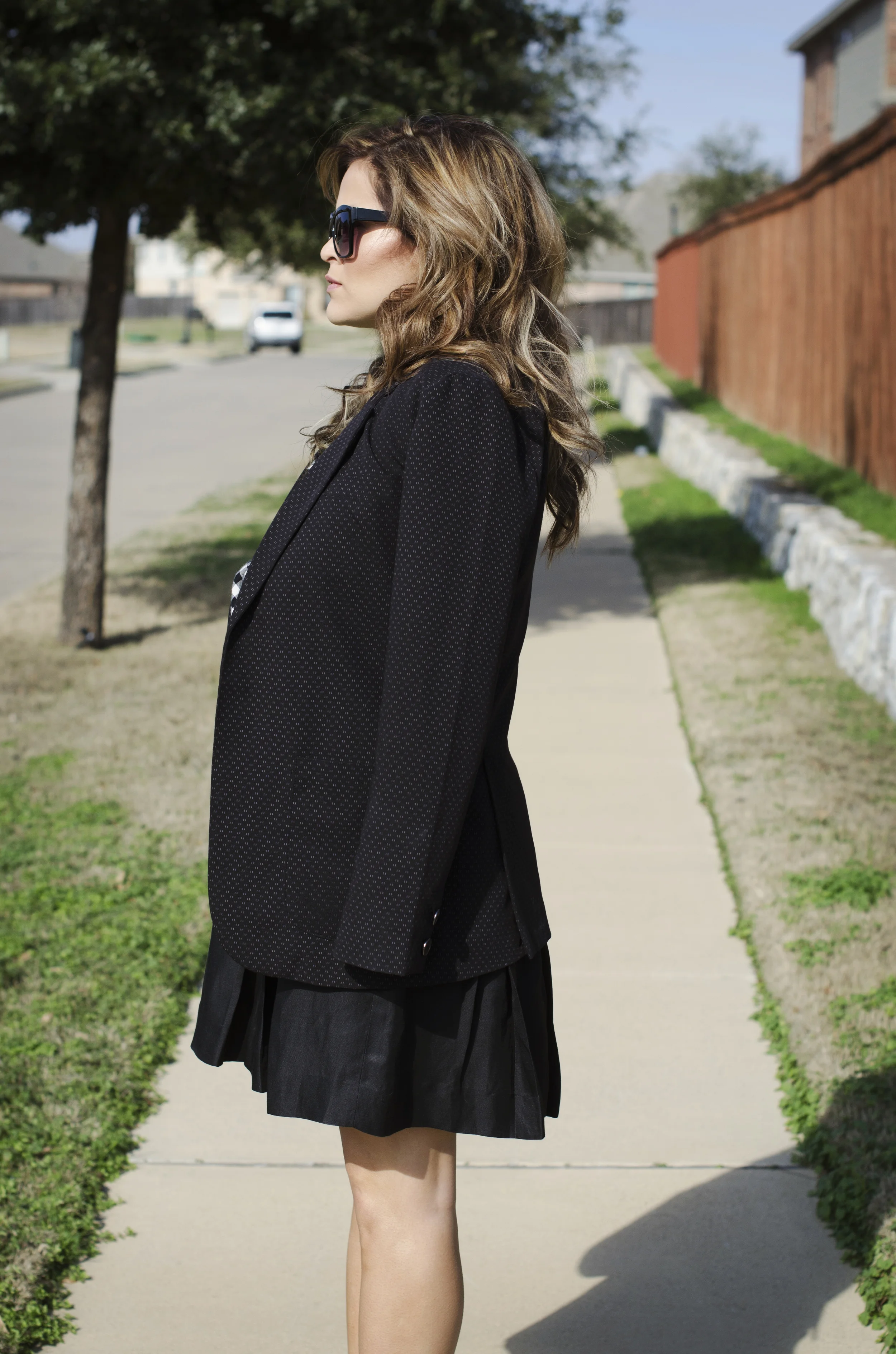 Hello Friday! A little style inspiration for you this weekend. Heading out on a date, party, or wedding?! This would be idealistic - dressy casual and, of course, if the weather is frigid then add some black opaque tights to cover up those bare legs. Add a thick coat as well, a blazer won't keep you warm when outside.