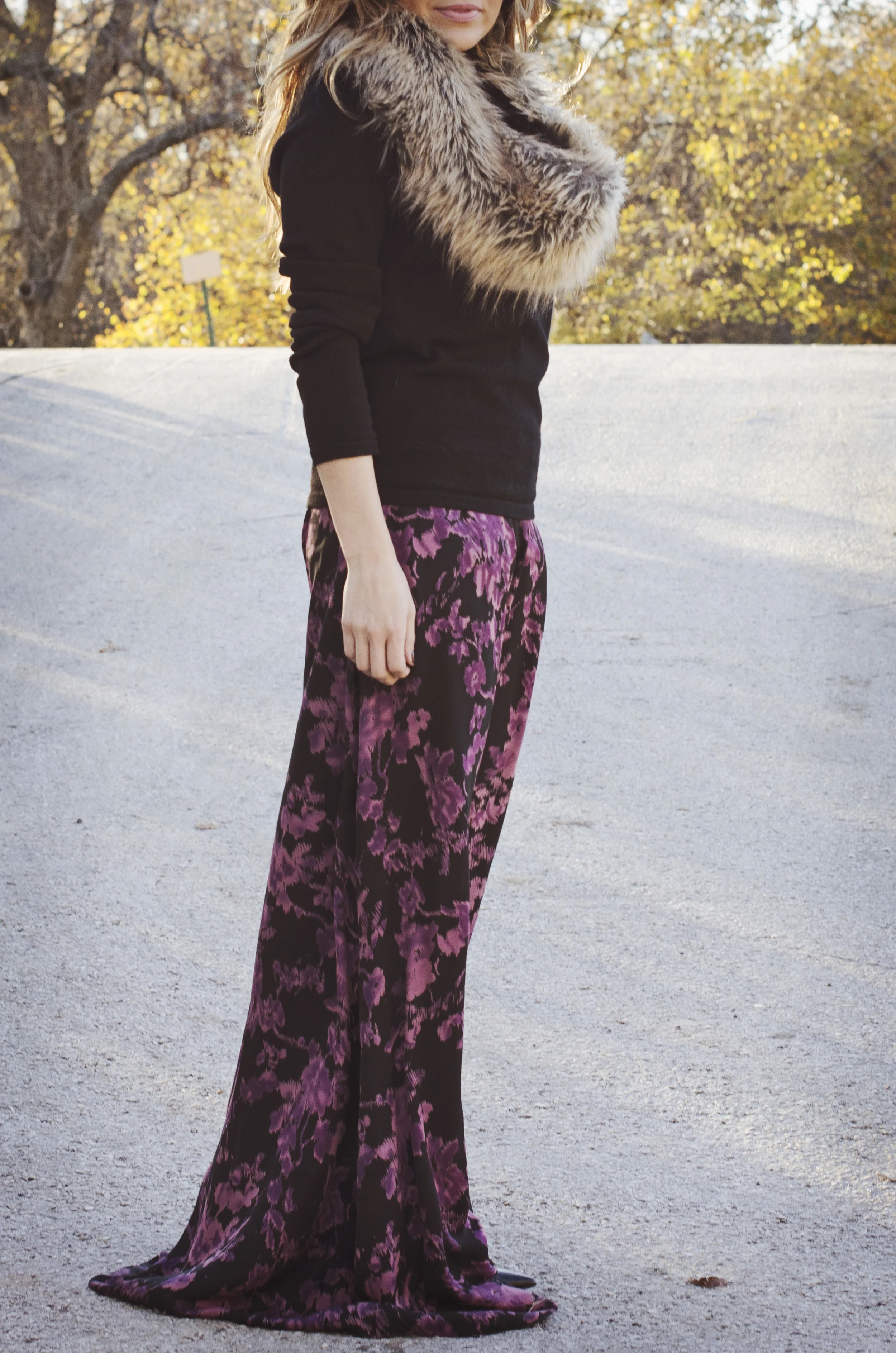 Fall hues are all around us, from the leaves changing to the garments hanging on the rack and this dress is no exception. This dress has an incredible open back but when the temps drop it's a little hard to stay warm. I wanted to give this dress a more casual look anyways, so I threw on a fitted sweater since the bottom is pretty flowy. I think it balances the whole outfit. Fun fact: this sweater is actually my husband's and stole it from him a few years ago and it's been a staple in my closet. Added bonus, the faux fur scarf. I snagged it last year at Nordstorm and it has returned once again, get it here! The price is on point and perfect for this weather.
