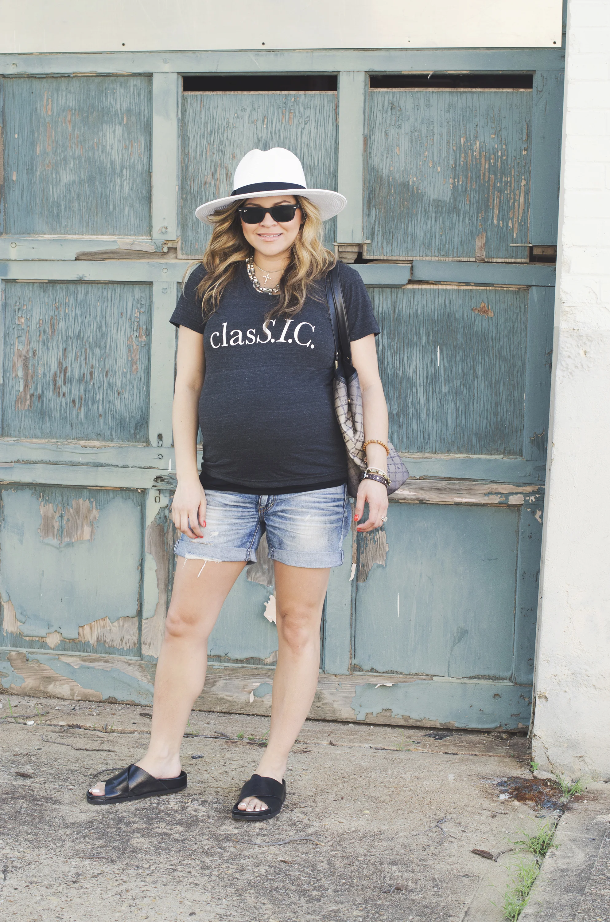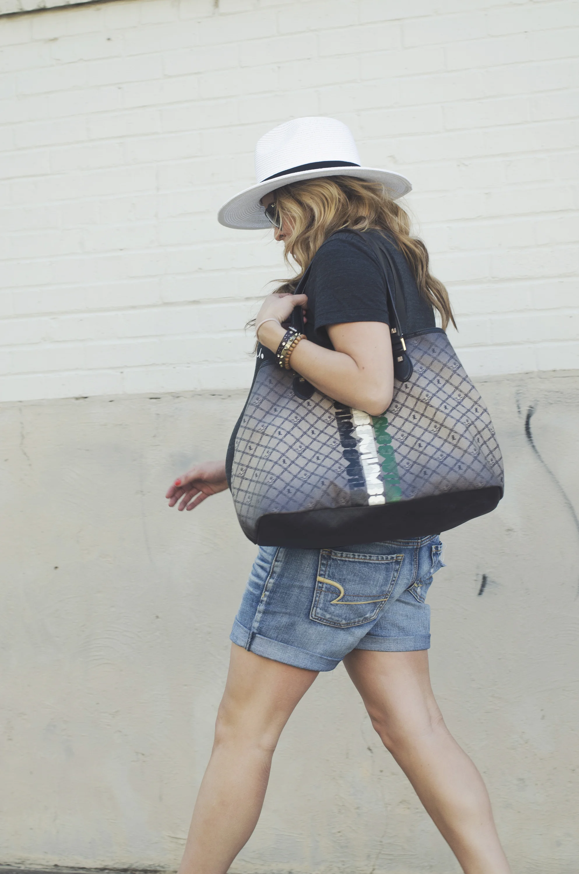 Tee: S.I.C. Couture | Shorts: American Eagle (similar and similar)| Bag: L.A.M.B. (old but love this one and this) | Shoes: Sam Edelman | Hat: Target