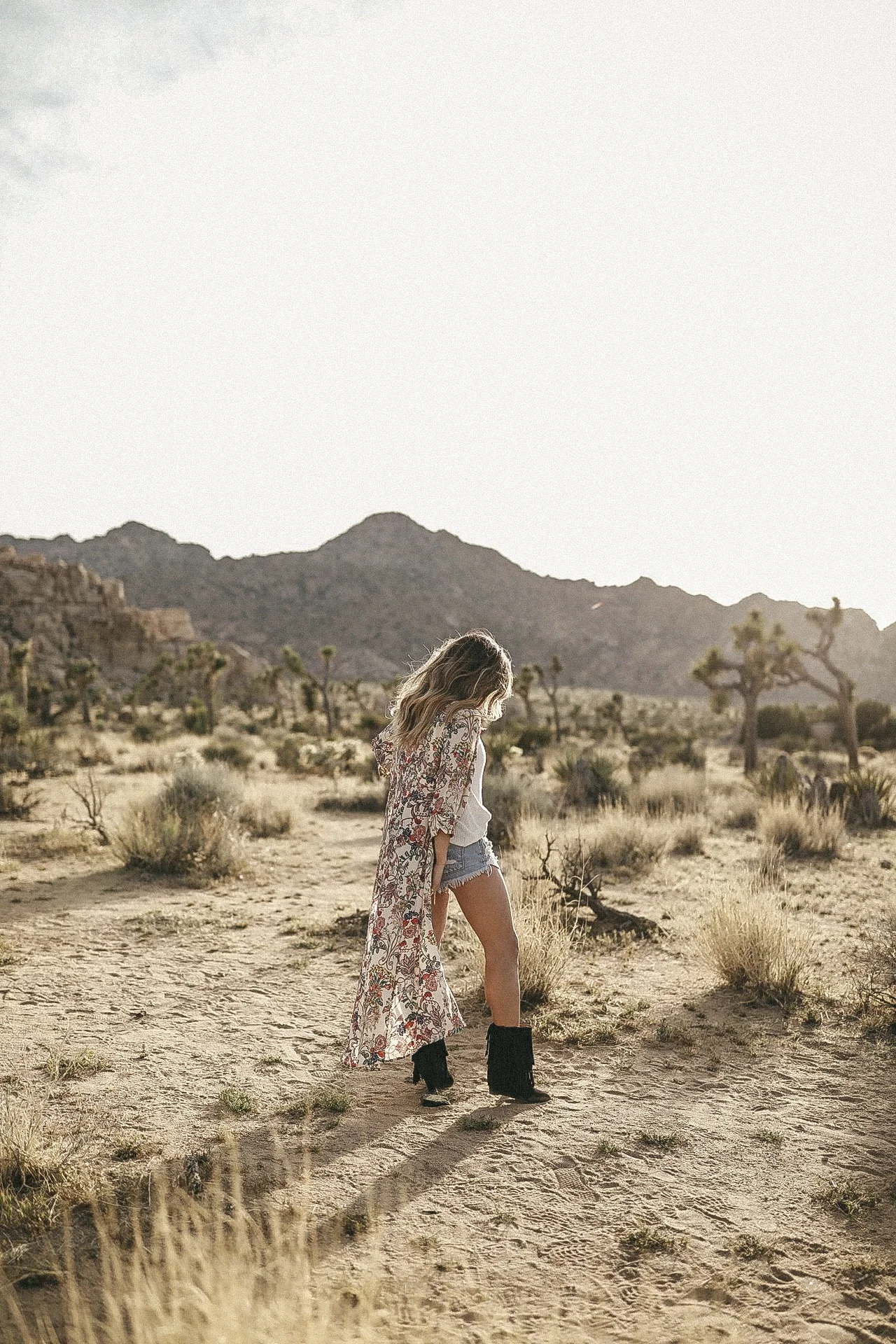 I am a sucker for a two for one item, this floral "kimono" is actually a wrap dress. You can wear it as a dress or like I did as a kimono over a knit tank and shorts with some fringe boots.